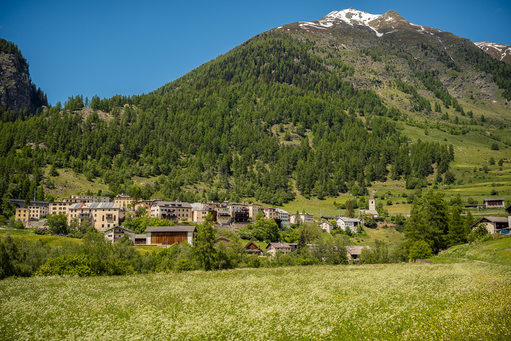 Es hatte zum Glück nicht viel Verkehr, da ich die Passabfahrten beim zwangsläufig höheren Fahrtempo mit Autos hinter mir immer als etwas stressig empfinde. Zum Glück hatte es schon im letzten Jahr einige Kurven unterhalb vom Pass in Richtung Susch eine Baustelle mit Ampelsteuerung. Diese war immer noch in Betrieb, sodass ich ab dort stressfrei hinter einer Welle von Autos und ohne weiteren Verkehr hinter mir bergab fahren konnte. Kurz vor Susch gab es dann nochmals eine Baustelle mit einem chaotischen Stau und einiger Wartezeit, aber da war die Abfahrt schon so gut wie geschafft.