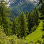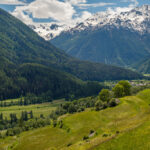 Hinter Ftan begann dann der Abstieg zu meinem Tourenziel bei Scuol. Ich wählte dafür allerdings nicht den Inn-Radweg, sondern die Mountainbikeroute 444. Diese verlief anfangs noch etwas weiter ansteigend über Feldwege und ging dann über Scuol in eine ziemlich steile und kurvenreiche Abfahrt über viel losen Schotter über. Mit einigen Balanceakten, viel Konzentration beim Bremsen und angehaltenem Atem konnte ich diesen letzten Wegabschnitt aber trotz hohem Reifendruck und Semi-Slicks sturzfrei meistern.