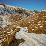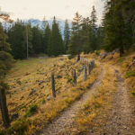 Fahrt zur Alp da la Creusch bei starkem Föhnwind in der Höhe. Abfahrt nach Plaun sulla Sesa erstmals auf einem neuen Trail.