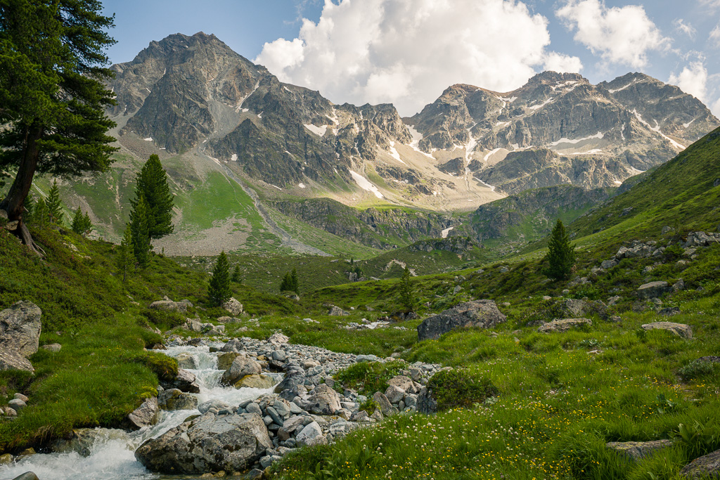 Von Preda an der Alp Mulix vorbei zum einsamen Lai Negr.
