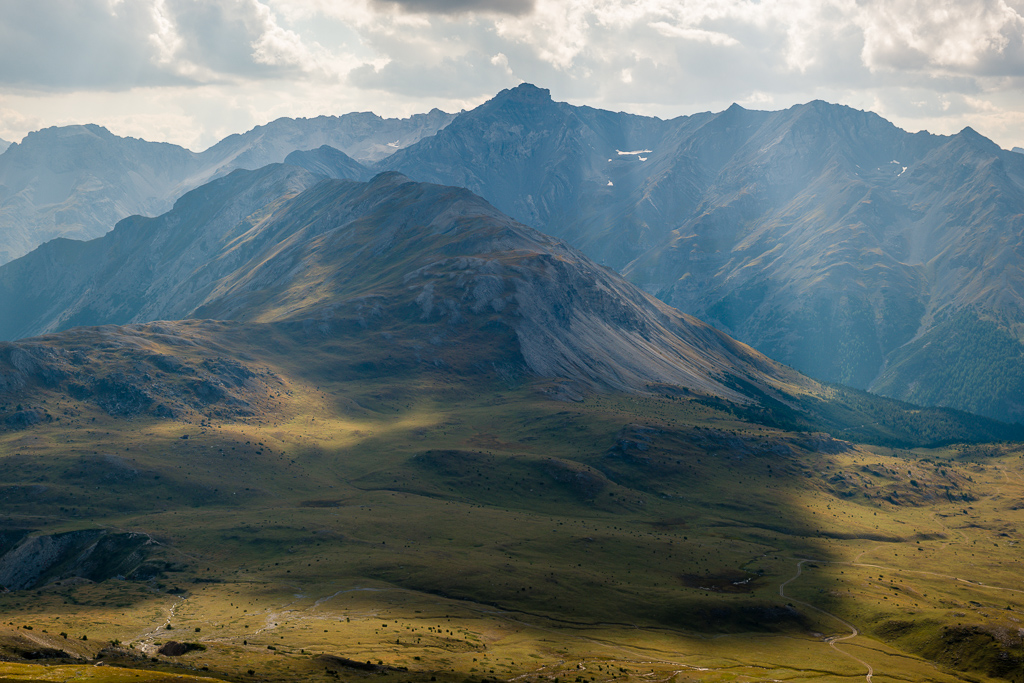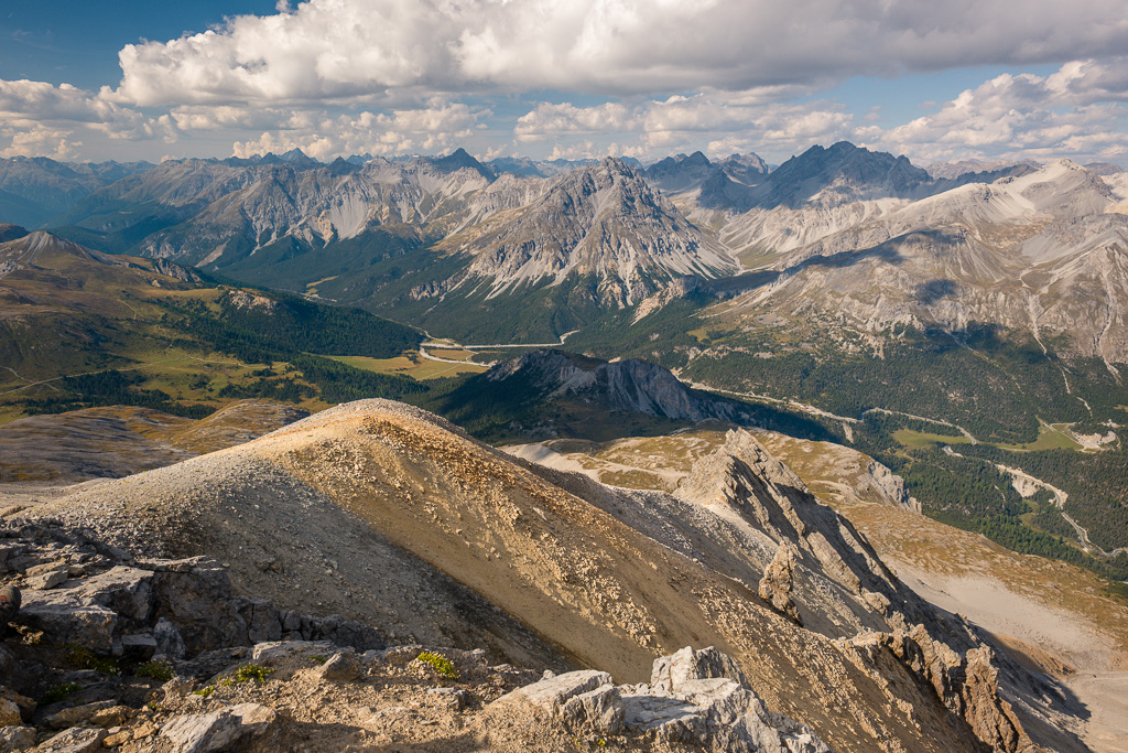 Wir sind aus Zeitgründen auf dem Aufstiegsweg zum Ofenpass zurückgekehrt, ein weiterer (aber längerer) Abstieg auf markiertem Weg ist vom Gipfel aus aber nach Süden über Muliniersch nach Tschierv möglich.