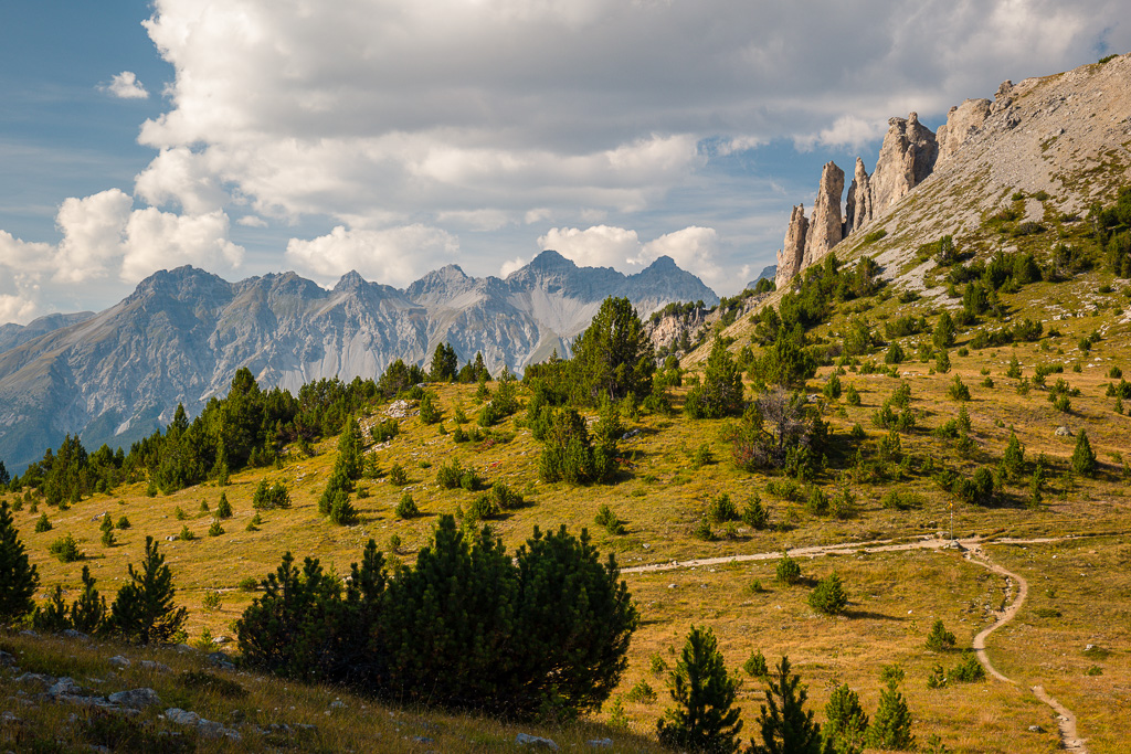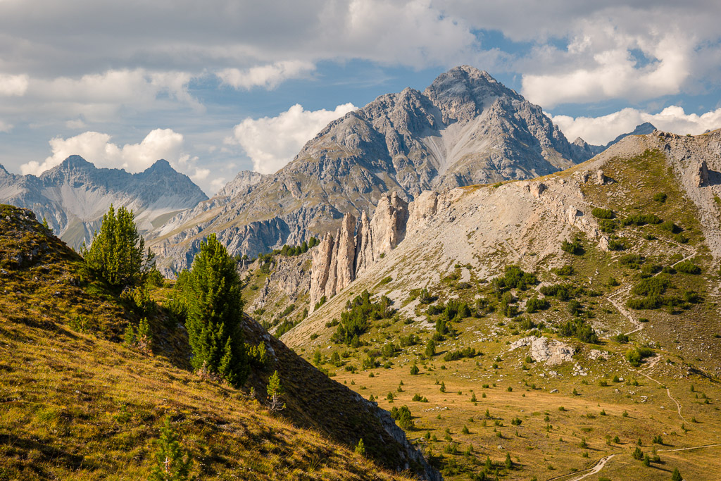 Vom Ofenpass aus immer den Wegweisern zum Piz Daint nach. Zunächst unter den bizarren Felsaufschwüngen des Il Lajet vorbei zur Grasfläche von Davo Plattas (idealer Picknickort und Liegewiese, sowie von hier aus lohnenswerter und kurzer Abstecher zum darüberliegenden Il Lajet möglich).