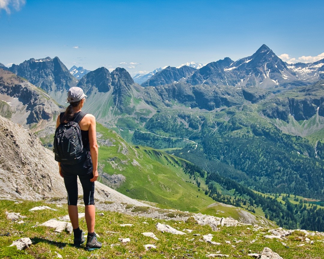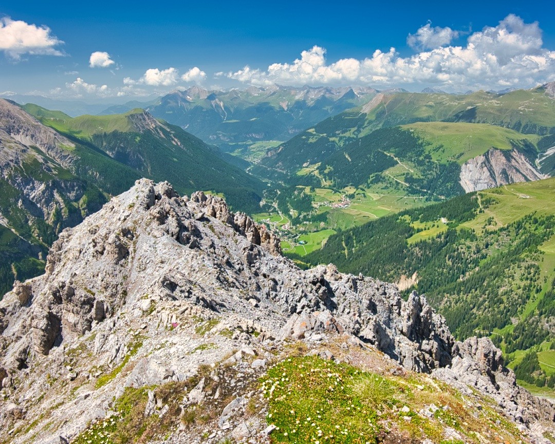 Wieder auf dem Wanderweg angekommen, geht es weiter in Richtung Bergün. Kurz nach der Grasschulter kann man noch einen Abstecher zum bereits erwähnten «Zuckerhut» auf der südlichen Seite machen, der die Grasschulter um wenige Meter überragt Während von der Schulter aus schräge Karstplatten den Weg zur Kuppe versperren, führen Wegspuren etwas später bequem um diese herum.