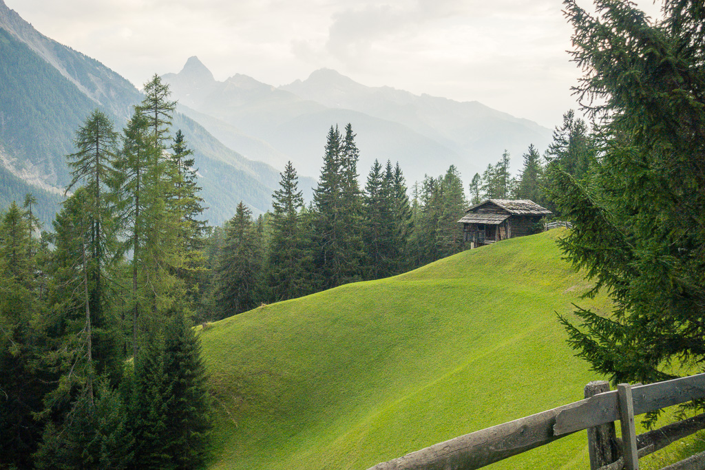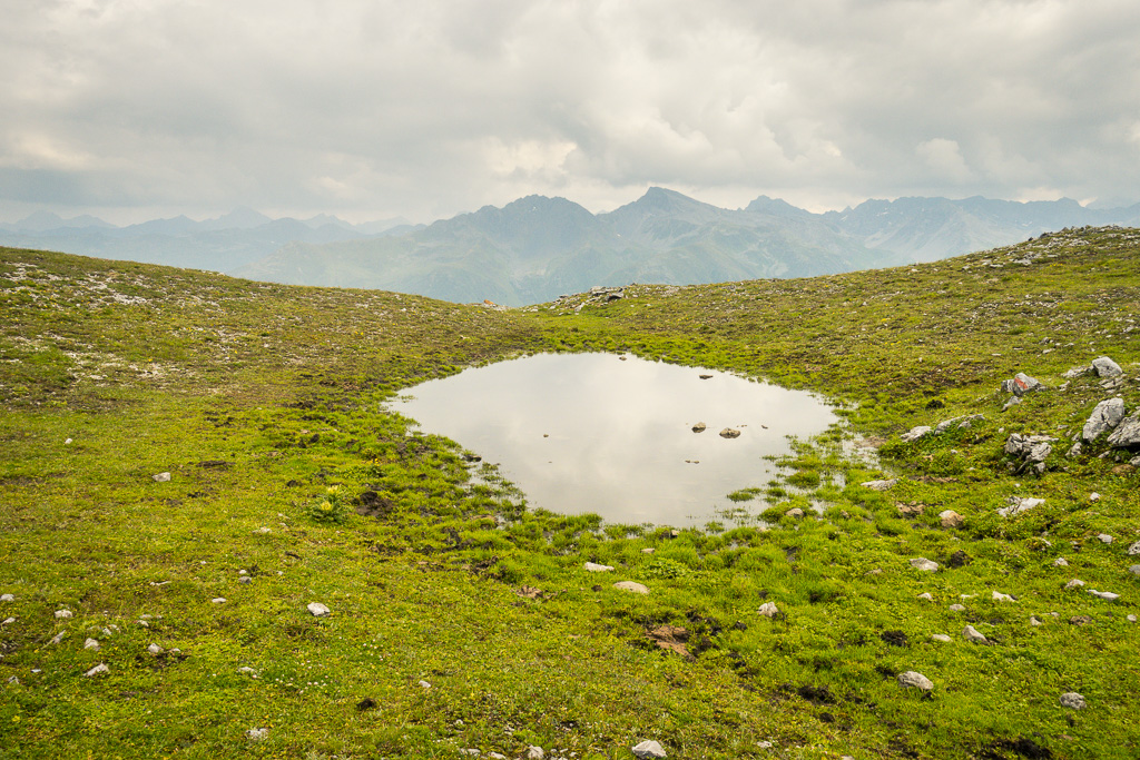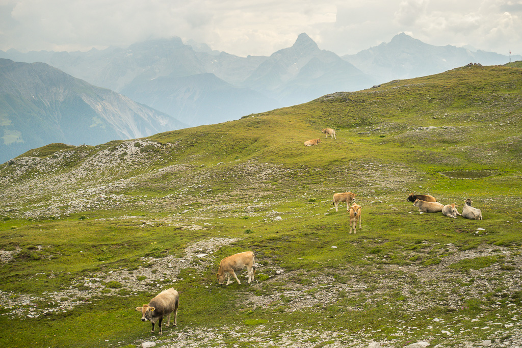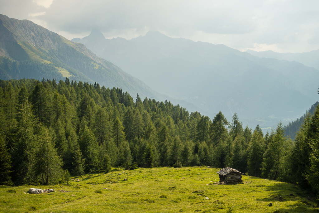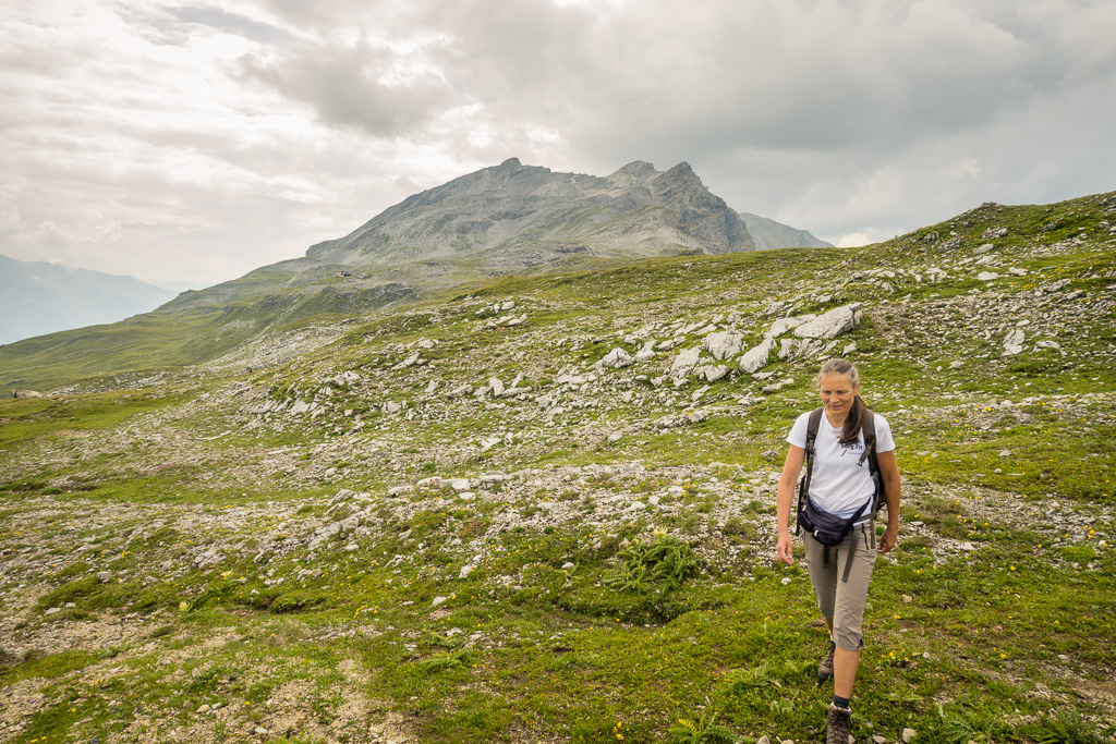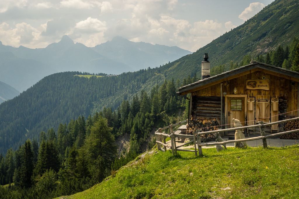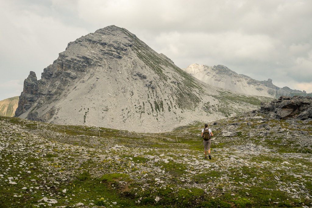 Bei P.1784 teilt sich der Weg. Links führt er weiter zur Wiesner Alp, während wir nach rechts in Richtung Platsch aufsteigen. Bei der Hütte von Platsch (P.1957) noch weiter dem Hang entlang und dann, sobald die dichte Vegetation es zulässt, weglos gerade hangaufwärts in Richtung Valbellahorn.
