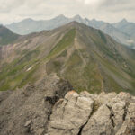 Nach Norden auf dem Wanderweg über weite Geröllfelder bis zur Alteinfurgga absteigen. Auf einem Pfad über Weidegelände zum langgezogenen Grasrücken von Alteingrat. Relativ flach weiter bis ans südöstliche Ende, wo der steile Abstieg über Steigberg und dann später auf einem Forstweg durch den Wald nach Steigrügg bis zu einer Lichtung mit HÜtten bei Steigmeder führt.