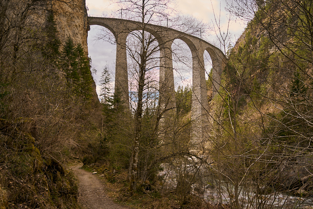 Um die Tour heute etwas anstrengender zu gestalten, baute ich noch ein paar Schikanen ein. Erstens war ich mit dem Mountainbike anstelle vom Gravelbike unterwegs. Zweitens fuhr ich beim Hinweg über die Trails von Leidboden zum Landwasserviadukt bei Filisur statt wie üblich auf der Strasse über Alvaneu. Drittens fuhr ich nicht auf der Strasse von Filisur nach Bergün, sondern auf Feldwegen nach Bellaluna und dem Trail über Crestas da Buel auf der gegenüberliegenden Seite vom Bergüner Stein nach Bergün. Dieser Trail ist im Aufstieg zwar sehr mühsam (in der Abfahrt dafür umso schöner), erspart einem aber in beide Richtungen den ganzen Strassenverkehr von Filisur nach Bergün.