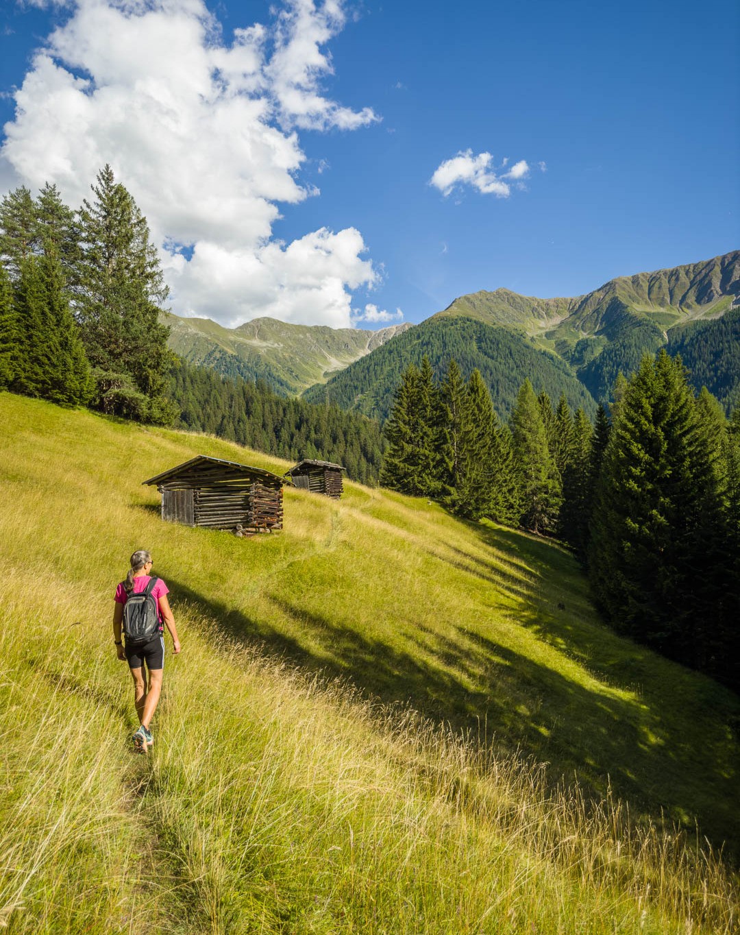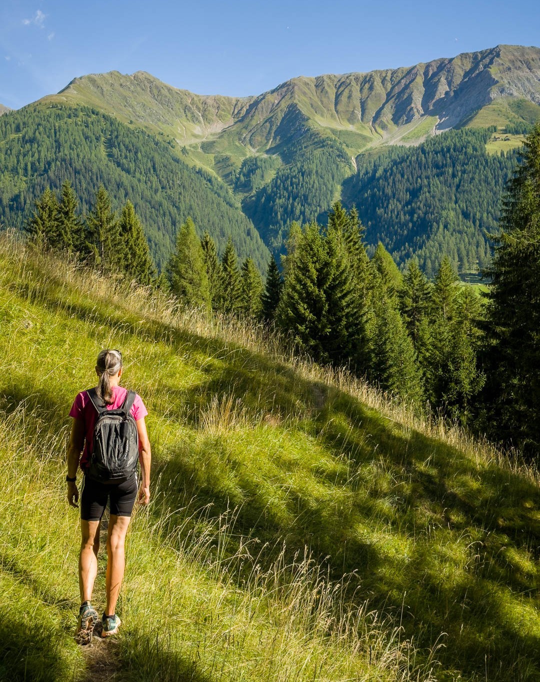 Abendwanderung von Davos Wiesen zu einem malerischen Wasserfall auf dem Weg nach Valdanna.
