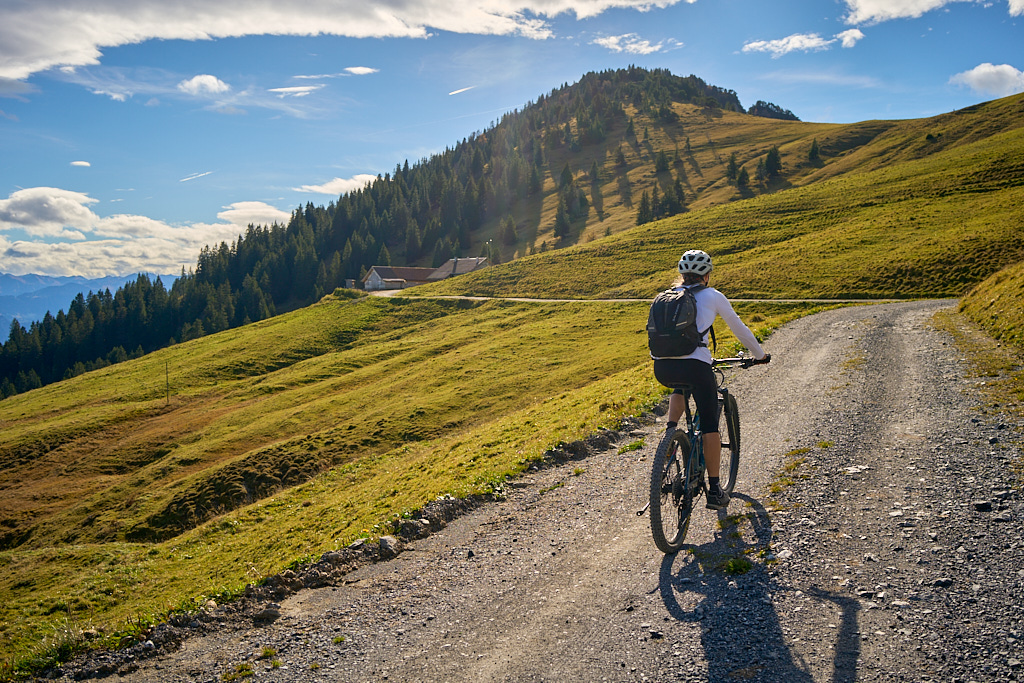 Um daneben für noch mehr Abwechslung zu sorgen, wollten wir die Tour heute auch noch mit der erstmaligen Besteigung des Gonzen erweitern, an dem ich bisher immer nur kräftesparend vorbeigefahren bin. Auch bei der Abfahrt ins Tal hofften wir, dass uns ein bisher noch unerprobter Waldtrail nach Ragnatsch anstelle der üblichen Strasse nach Berschis mehr Aufregung bescheren würde.