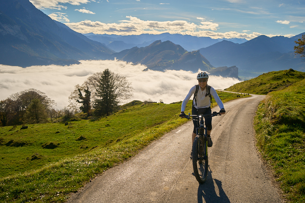 All dies artete in der Folge zu einem veritablen Kraftausdauerakt mit Stossen, Zerren, Schieben, Tragen und vielen Verschnaufpausen aus. Wir waren heilfroh, als wir endlich beim Chamm am Strassenrand wieder auf festem Boden standen und unsere Räder wieder besteigen konnten.