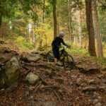 Weiter unten mündete der Trail in eine Forststrasse ein. Wir hielten dies zunächst für das Ende der Abfahrt. Wenig später zweigte aber nochmals ein aufregender Trailabschnitt ab, hinter dem wir unten am Waldrand auf einem Industrieareal landeten. Nach kurzem Rätselraten fanden wir den nicht so offensichtlichen Ausgang aus der Anlage und erreichten die Hauptstrasse kurz vor Ragnatsch.