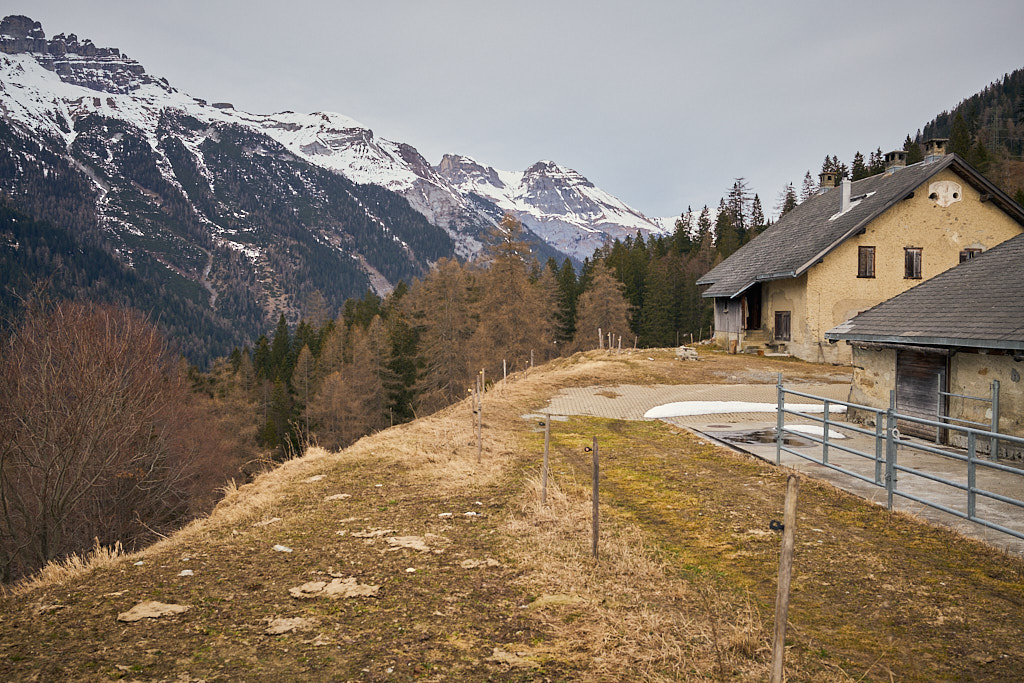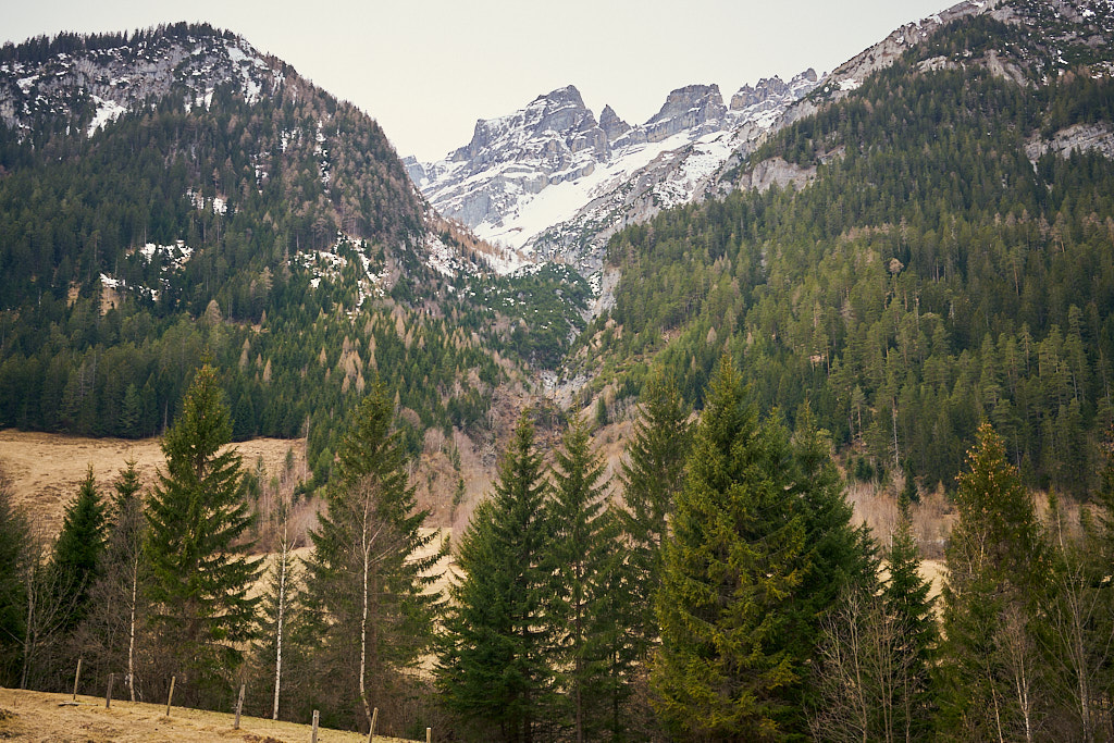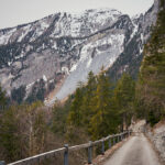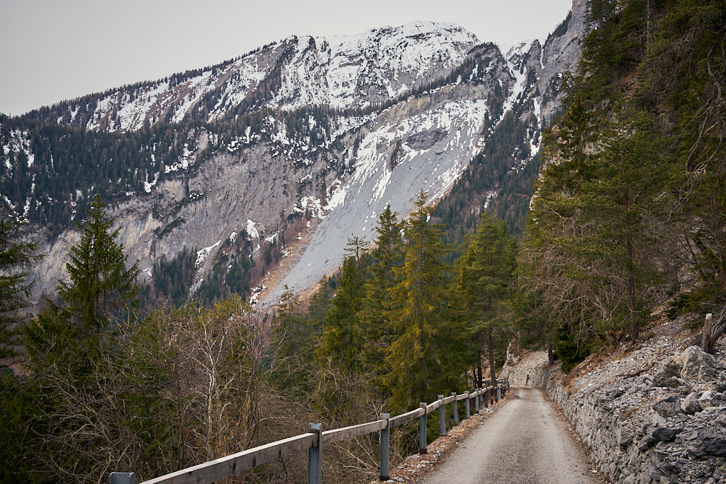 Ich stieg also nach einer längeren Wanderetappe endlich wieder aufs Bike. Die Abfahrt nach St. Margarethenberg war landschaftlich schön, körperlich wegen meiner durchgeschwitzten Kleidung und den wegen dem umgebenden Schnee kälteren Temperaturen aber ziemlich unangenehm. Die Strasse von St. Margarethenberg bis zur viel tiefer gelegenen Einmündung in die Hauptstrasse nach Vättis war steil, kurvenreich, nass und teils verschmutzt, somit ebenfalls kein Vergnügen.