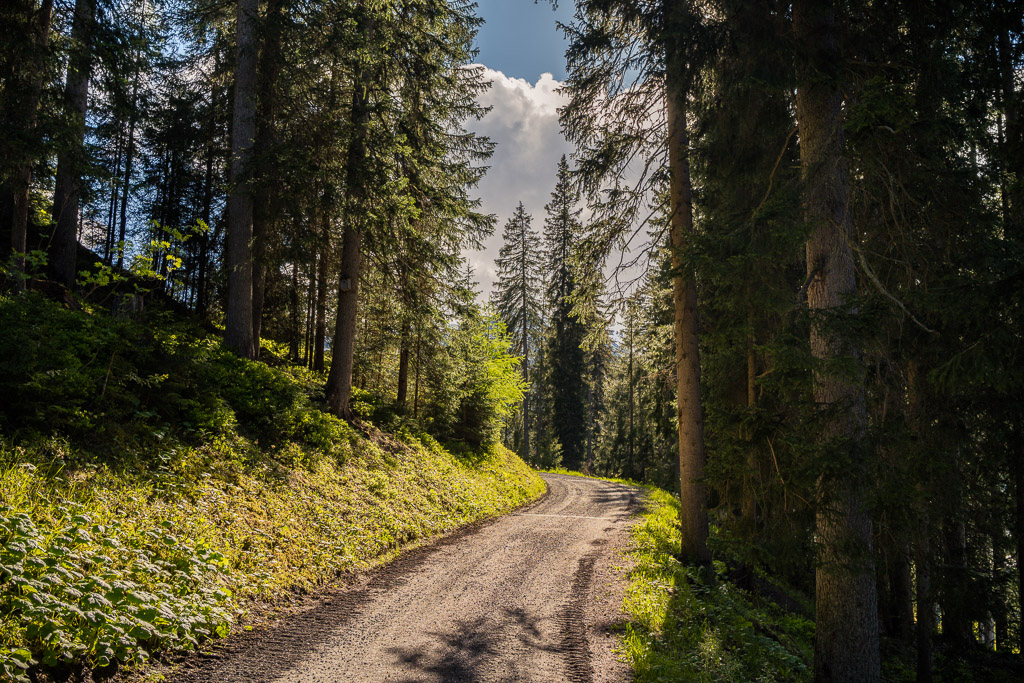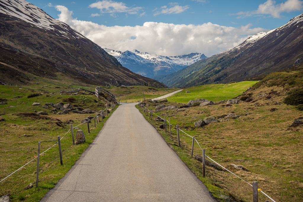 Die Strasse war bei meinem letzten Besuch hinter Teufi noch schneebedeckt und unpassierbar, sodass ich damals schon frühzeitig umkehren musste. Diesmal war die Landschaft aber bis ans Talende bei Dürrboden grün und schneefrei. An diesem späten Nachmittag waren zahlreiche Velofahrer unterwegs, trotz einer heftigen kalten Bise. Kurzer Aufenthalt bei Dürrboden, danach Rückfahrt nach Davos und auf Waldwegen nach Clavadel. Zeitlich war es mir für einen Abstecher ins Sertigtal zu spät, sodass ich von Clavadel in der Abendsonne gleich nach Frauenkirch zurückrollte.