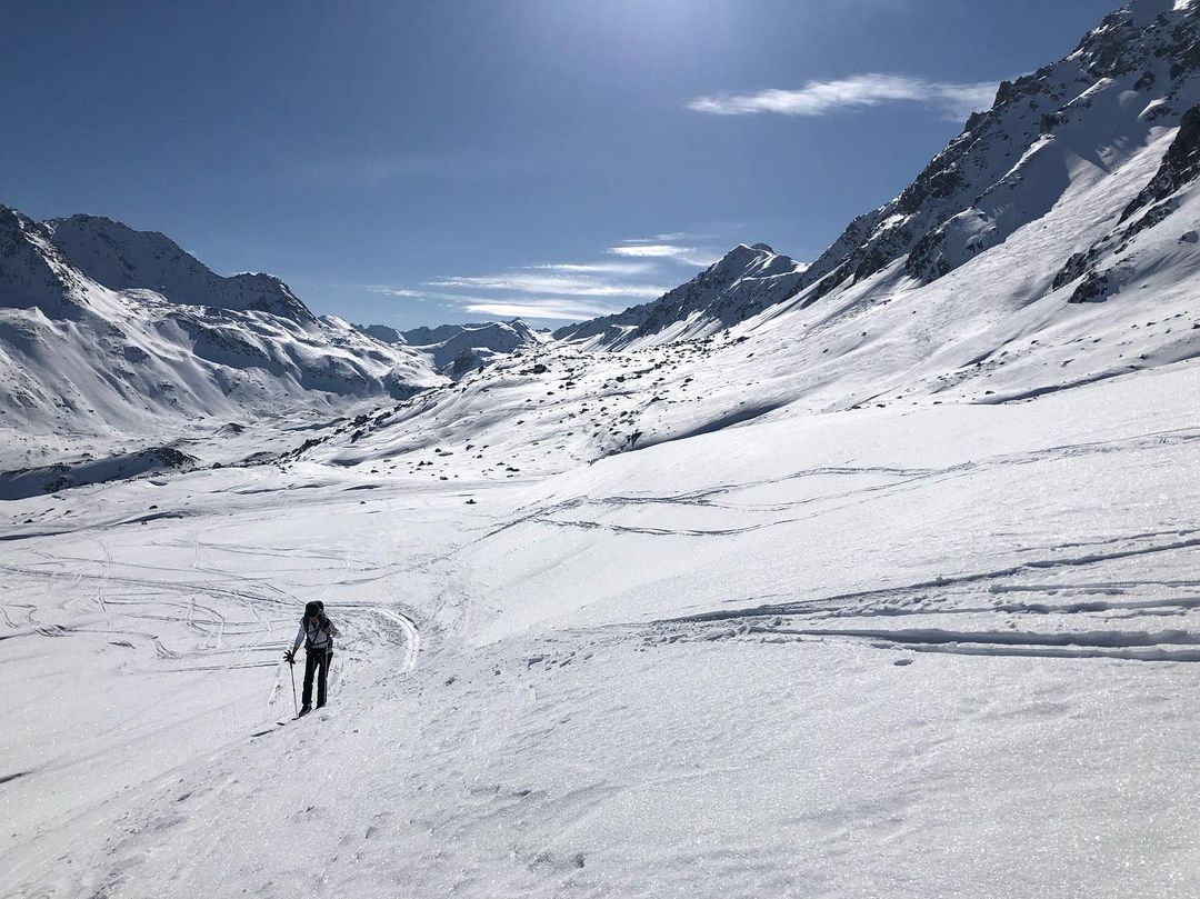 Von der Flüelapassstrasse aus mit den Ski zum Baslersch Chopf. Relativ kurze Tour mit einfacher Abfahrt, sodass wir nach kurzer Autofahrt noch weiter aufs Pischahorn gestiegen sind.