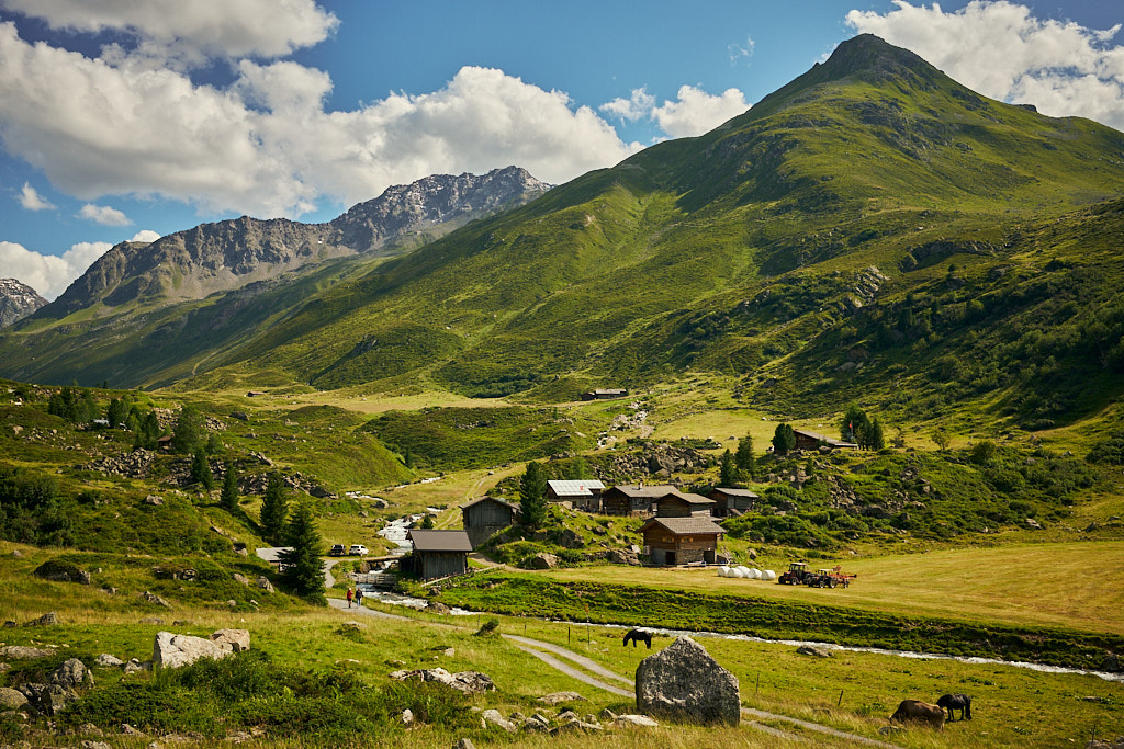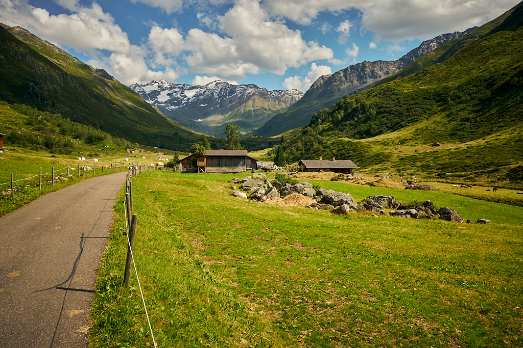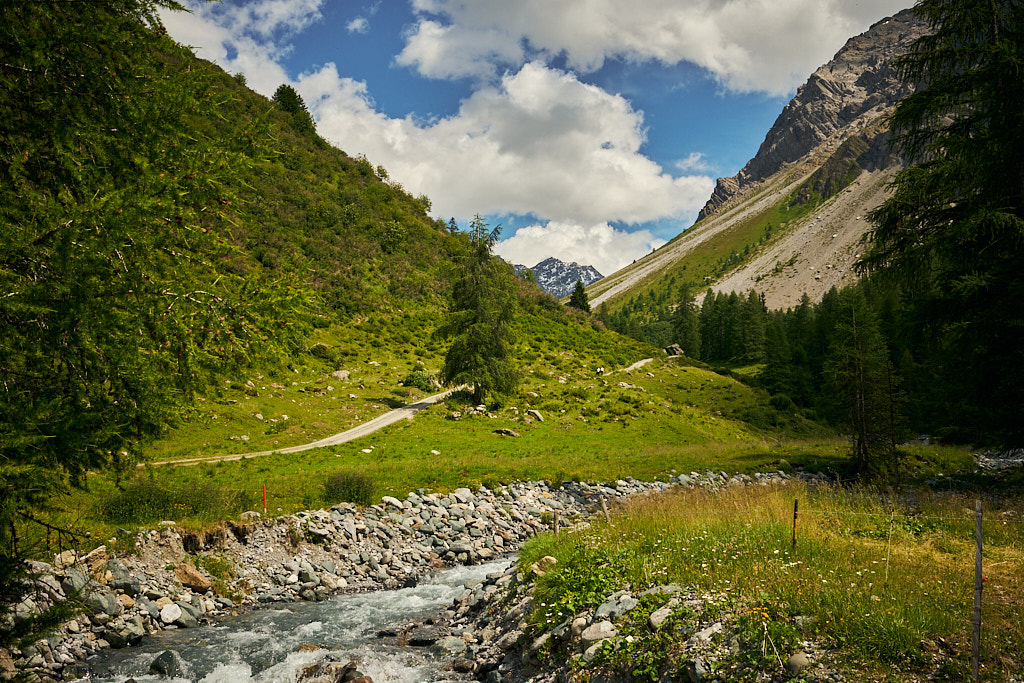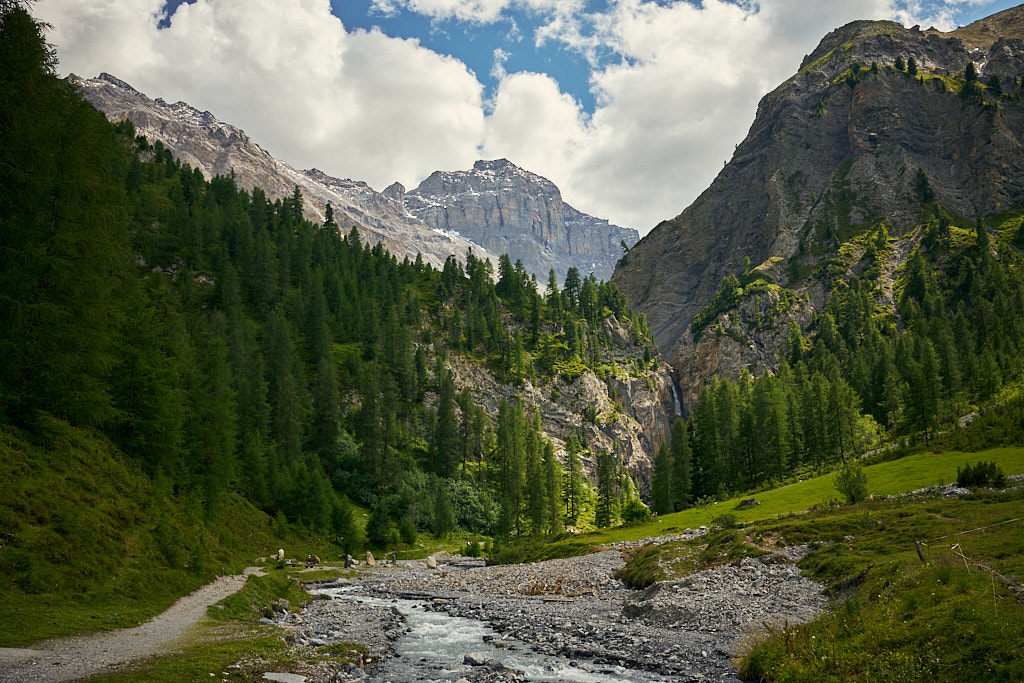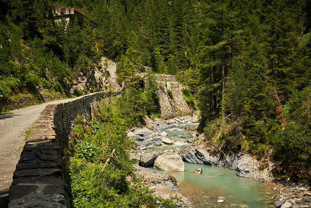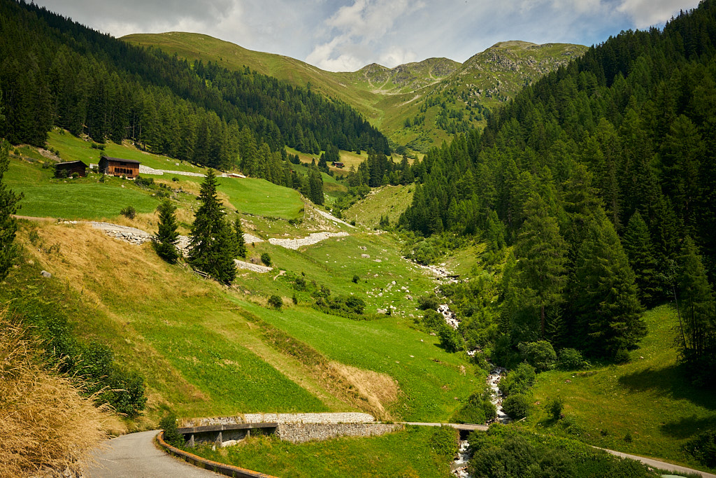In Davos Glaris wieder abseits der Hauptstrasse nach Hitzenboden hoch und wieder hinab nach Frauenkirch zum Anfang der Strasse ins Sertigtal. Dieser folgend bis nach Sertig Sand und noch etwas weiter bis in Sichtweite zum grossen Wasserfall.
