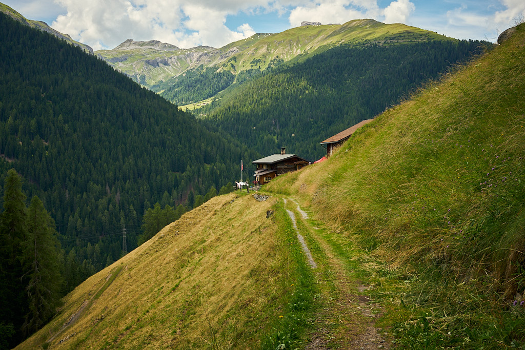 Auf der gleichen Strasse wieder zurück, bei aber zur Clavadeler Klinik hoch und auf dem anschliessenden Waldweg durch den Mättenwald am ganzen Ort Davos vorbei bis zur Duchlisäge am Eingang des Dischmatals. Dort bis zum Talschluss bei Dürrboden und auf gleichem Weg wieder zurück nach Davos.