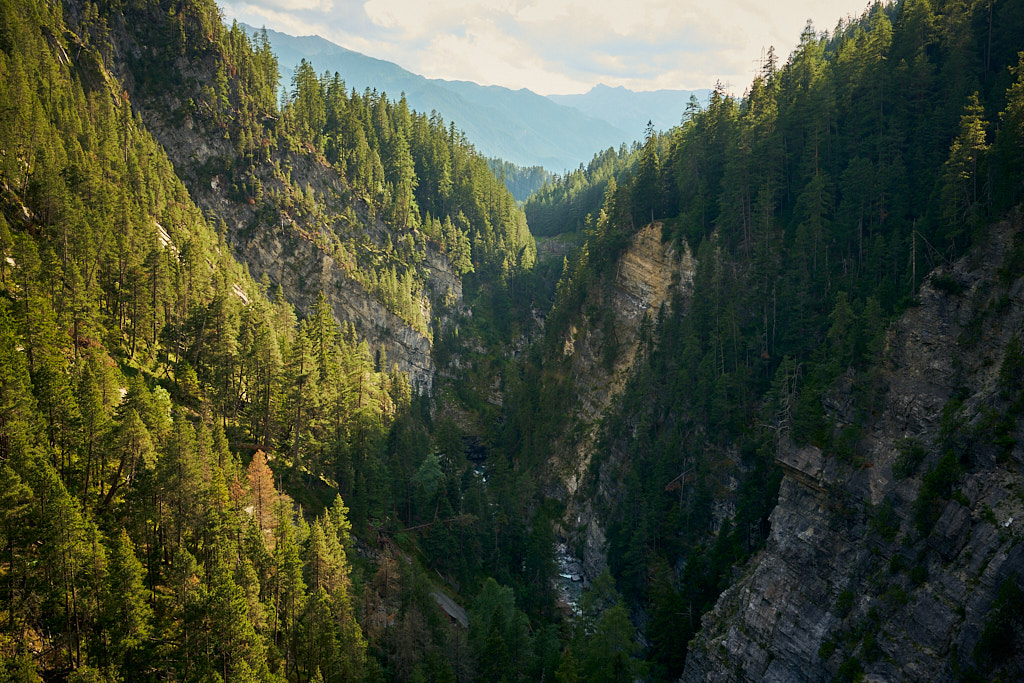 Von Schmitten aus über Davos Wiesen hinunter nach Valdanna und auf der alten Zügenstrasse durch die Zügenschlucht vorbei am Landwassertunnel nach Schmelzboden. Aufstieg nach Davos Monstein und auf einem Wander-Höhenweg durch den Rotschwald nach Spina und Davos Glaris. Damit ersparte ich mir nach dem Landwassertunnel zwei weitere, wenn auch viel kürzere Strassentunnels. Ich hatte diesen Weg erst einmal mit dem Gravelbike befahren, aber in der entgegengesetzten Richtung. In Richtung Glaris ist er aber genauso interessant, besonders mit Wanderern unterwegs…
