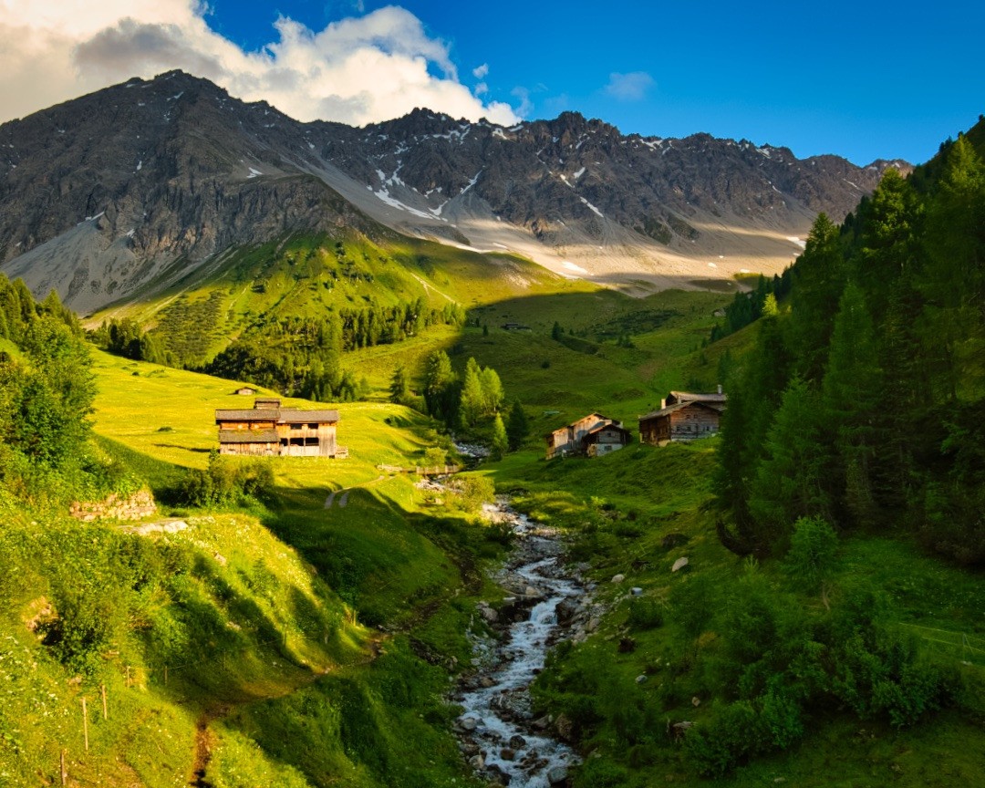 Von Davos Monstein wandern wir auf einer Alpstrasse zu den Inner-, Unter- und Mitteralpen und weiter zum Maiensäss am Maschenboden (Brunnen, «Kiosk» mit Alpprodukten).