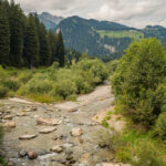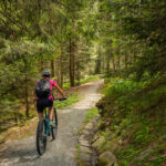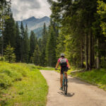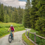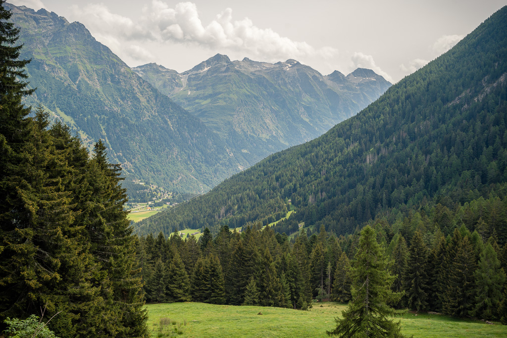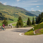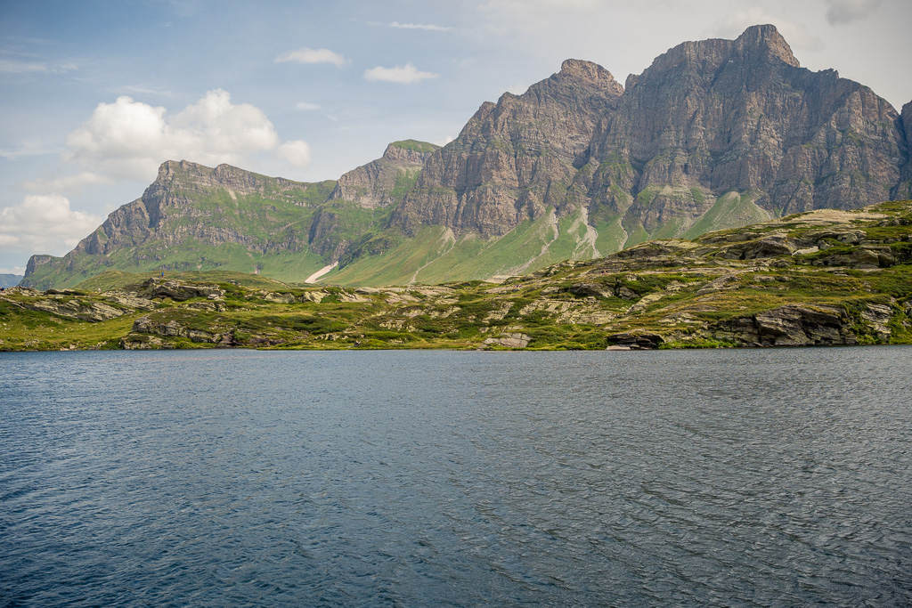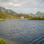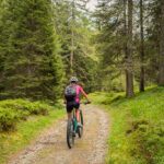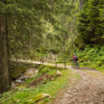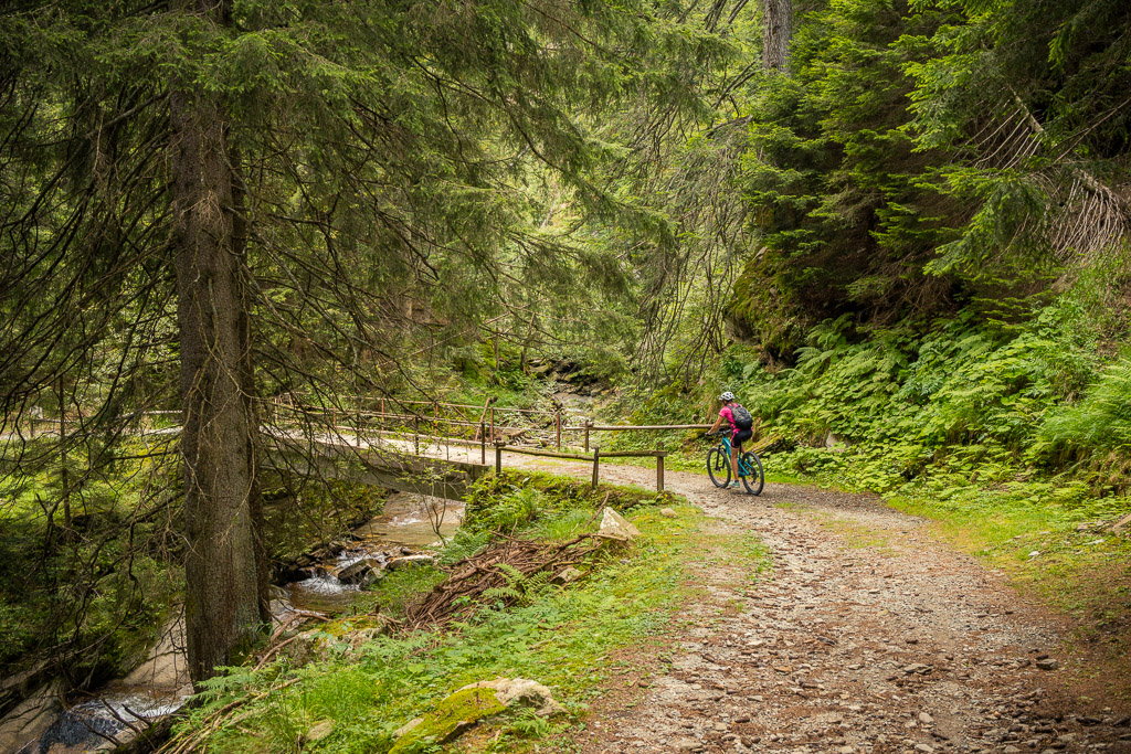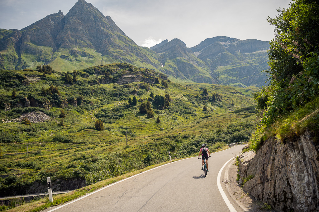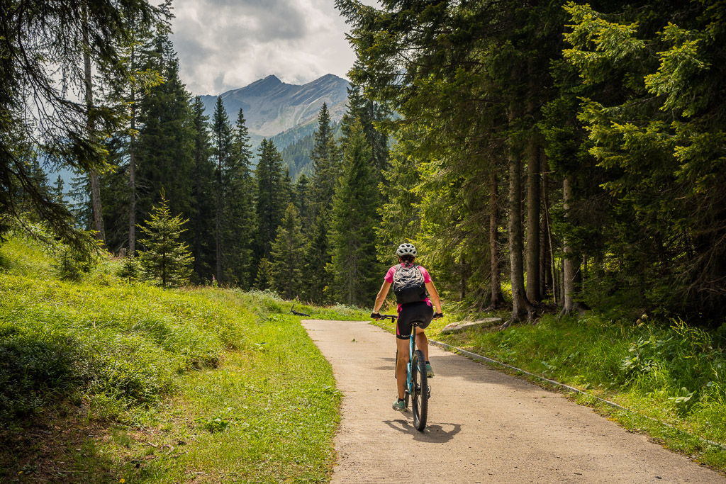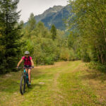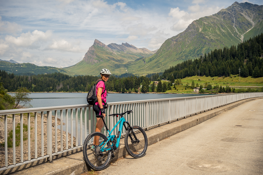 Durch die Blechwüste der Autos auf dem Parkplatz der (einige Jahre lang stillgelegten, aber jetzt offenbar wieder teilweise in Betrieb genommenen) Bergbahnen in San Bernardino bahnten wir uns einen Weg zum Anfang der MTB-Route nach Pian San Giacomo. Auf diesem schönen Waldweg hatten wir uns etwas mehr Abgeschiedenheit erhofft, zumindest bis zum Lago d’Isola waren aber auch hier viele Spaziergänger unterwegs. Nach der Staumauer des Sees wurde es aber schnell ruhiger und der Weg wand sich in einer sehr schönen Abfahrt hinunter nach Pian San Giacomo. Ich war froh, hier auf dem Mountainbike zu sitzen, da einige Wegabschnitte doch sehr holprig fürs Gravelbike und für die Handgelenke gewesen wären.