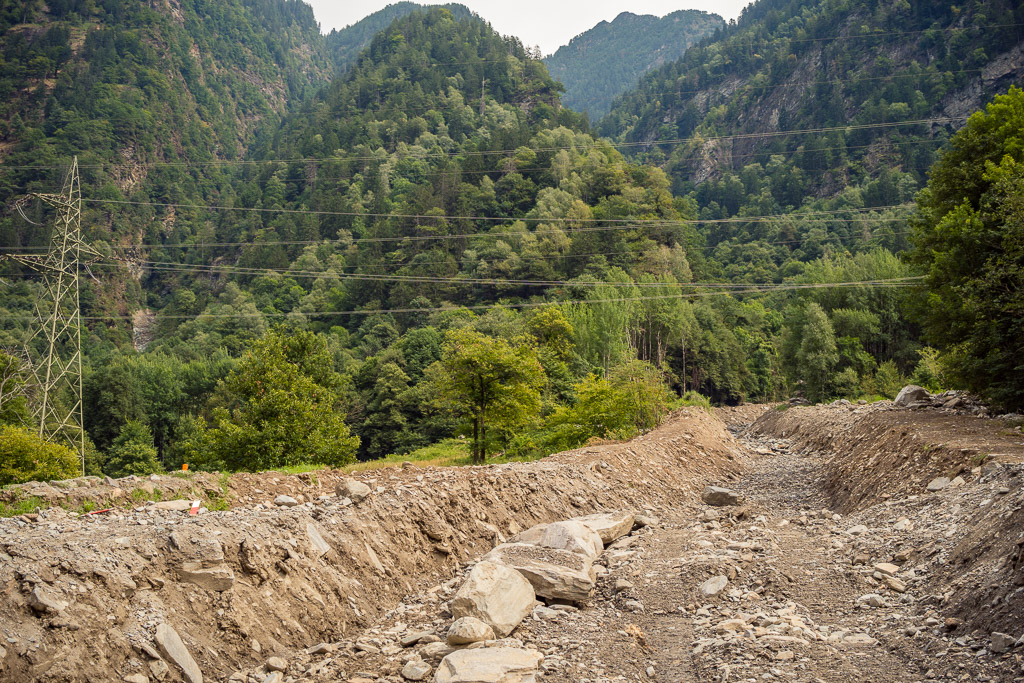 Etwas Kopfzerbrechen bei der Weiterfahrt bereiteten mir die schweren Unwetter und Überschwemmungen vor einigen Wochen, die weite Teile des Valle Malcesina verwüsteten und zahlreiche Verkehrswege unpassierbar machten. In der Zwischenzeit wurde dank enormen Anstrengungen zwar vieles wieder freigeräumt und ich hatte meine Routenplanung am Vorabend auch dem aktuellsten Stand der offiziell im Internet publizierten Wegsperrungen angepasst. Trotzdem verblieb immer noch ein Unsicherheitsfaktor, da die Angaben im Internet erfahrungsgemäss nicht immer zu 100% mit den Verhältnissen vor Ort übereinstimmen.