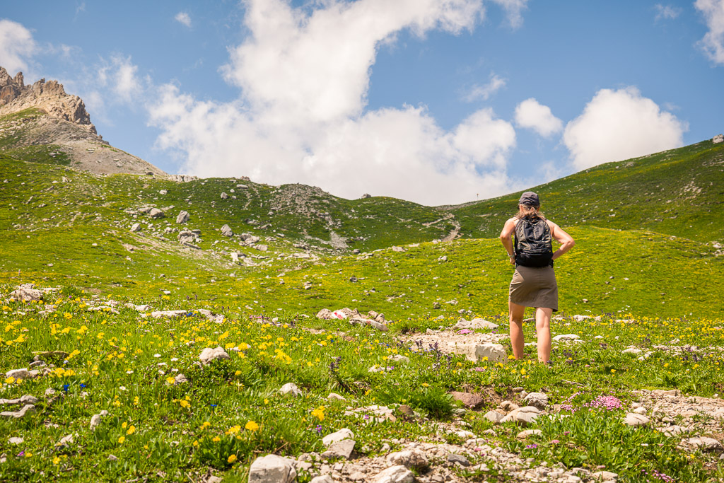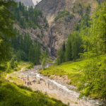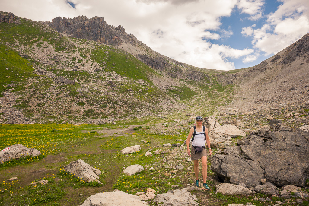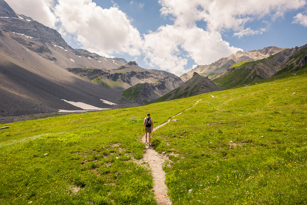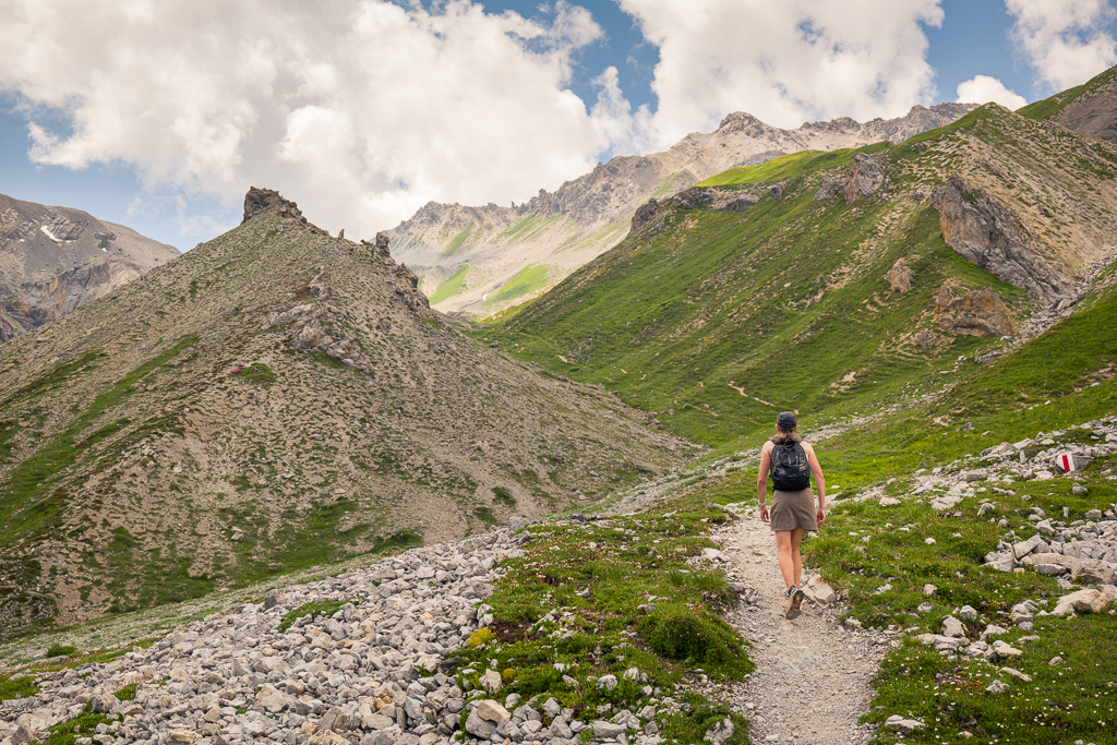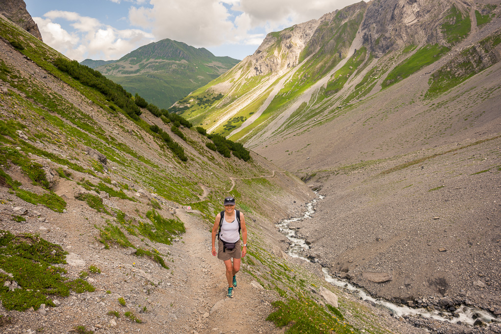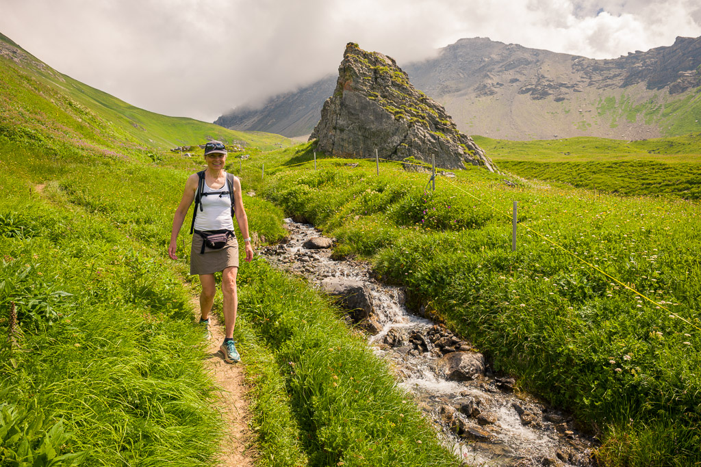 Von Sertig Sand in Richtung Wasserfall und dem rot-weissen Wanderweg ins Ducantal und zur Fanezfurgga folgen. Der etwas nach links ausholende Weg über Mittelchrüz (bislang eher die Wahl für Skitourengänger im Winter) scheint inzwischen der Normalweg ins Ducantal geworden zu sein, während die direktere Variante am Wasserfall vorbei offenbar nicht mehr in Betrieb ist.