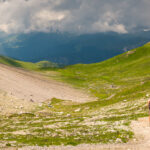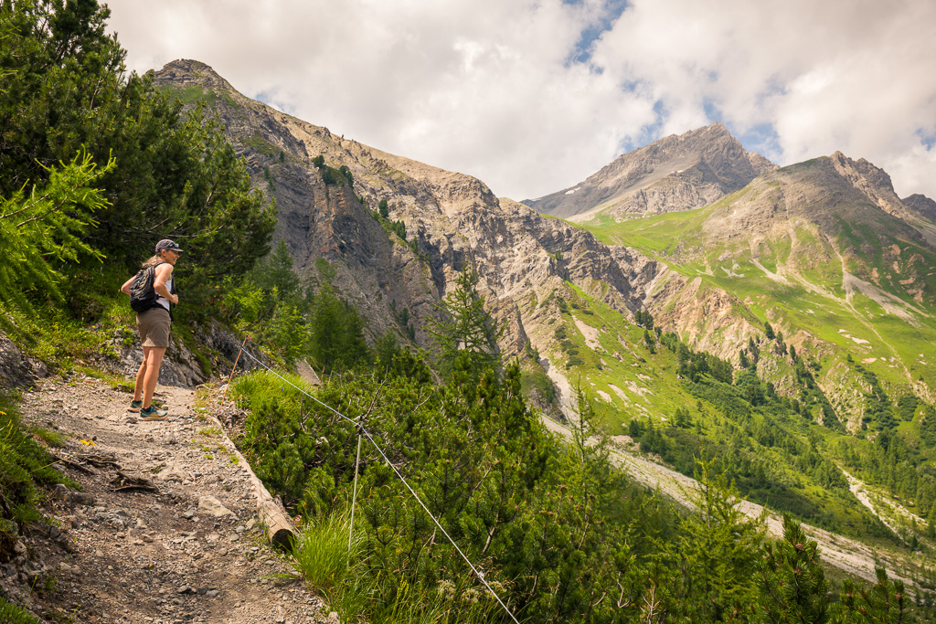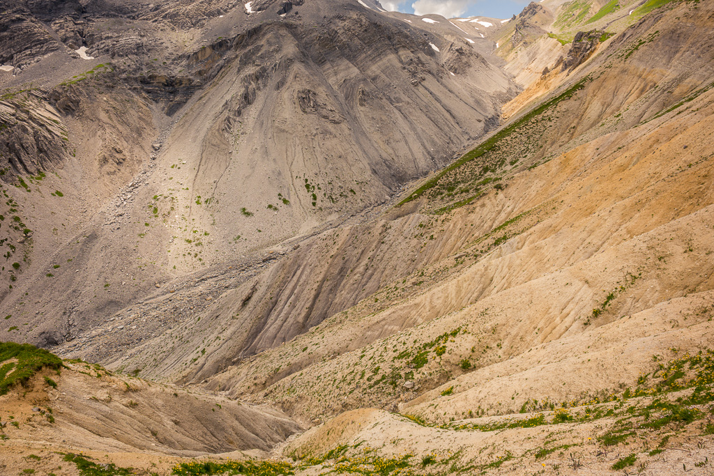 Noch vor einigen Jahren sind uns nur einzelne Mountainbiker auf ihrer Abfahrt durchs Ducantal entgegengekommen. Inzwischen sieht dies aber nach einer sehr beliebten (und belebten) Tour aus, da wir heute gleich mehreren Gruppen von Fahrern begegnet sind. Aus unserer Zuschauerperspektive scheint der Steilhang auf halbem Weg zwischen P.2519 und P.2390 die Schlüsselstelle bei der Abfahrt zu sein.