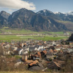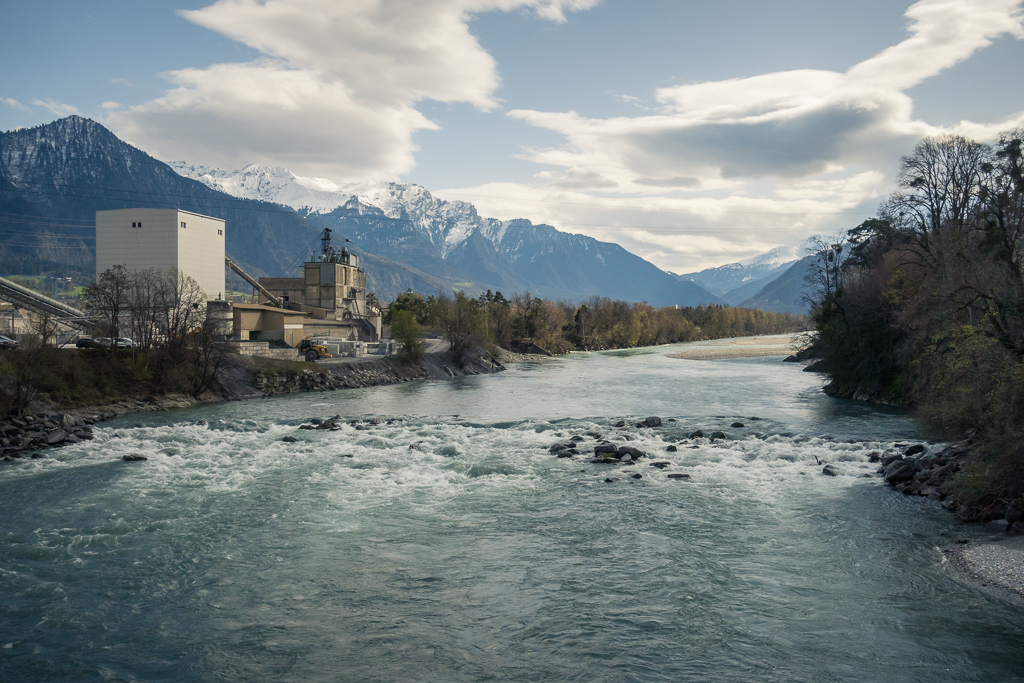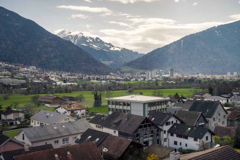 Dieser zweite Aufstieg war nicht mehr so heftig wie der erste und in schöner Fahrt dem Hang entlang und immer mit eindrücklichem Panoramablick auf das Rheintal erreichte ich schlussendlich Mastrils, von wo aus ich bis zum Talboden hinunterfuhr. Über die dortige Brücke querte ich den Rhein zur anderen Talseite und erreichte ein Quartier mit sehr urban-stylischen Wohnblöcken beim Bahnhof am nördlichen Rand von Landquart.
