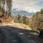 Von den Freizeitanlagen am Rossboden in Chur fuhr ich ein kurzes Stück am Stadtrand entlang nach Haldenstein. Hier begann der Aufstieg von der geräuschvollen Zivilisation in die zunehmend stille und abgelegene Natur. Die ersten Kurven auf einer Waldstrasse waren mit dem Gravelbike noch angenehm zu fahren. Danach ging es aber auf einem ziemlich holprigen und steilen Weg weiter zur Burgruine Grottenstein, die aktuell nicht weiter sehenswert war, da vollständig von einem Baugerüst verkleidet.