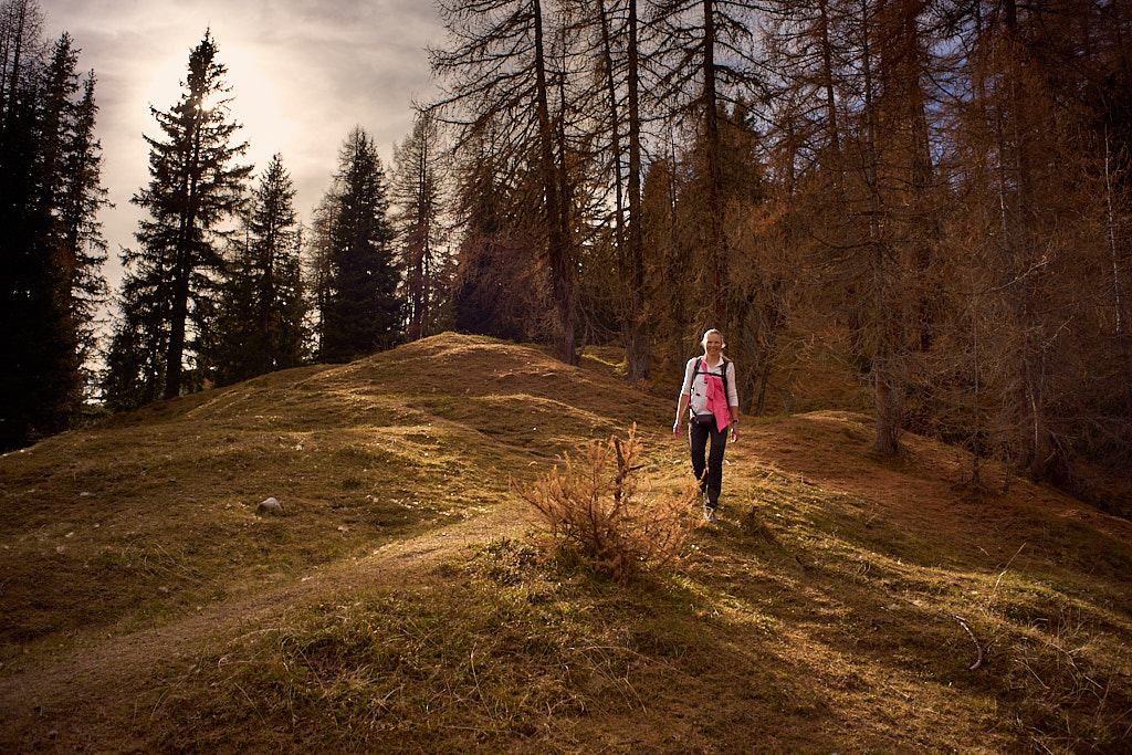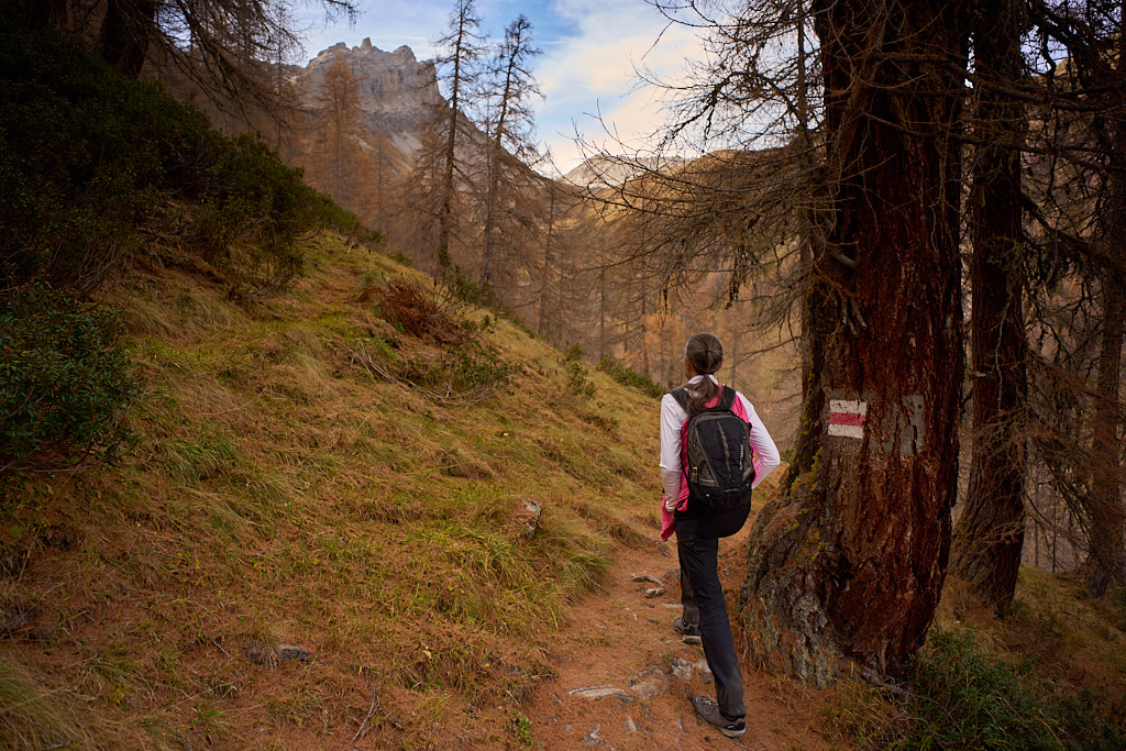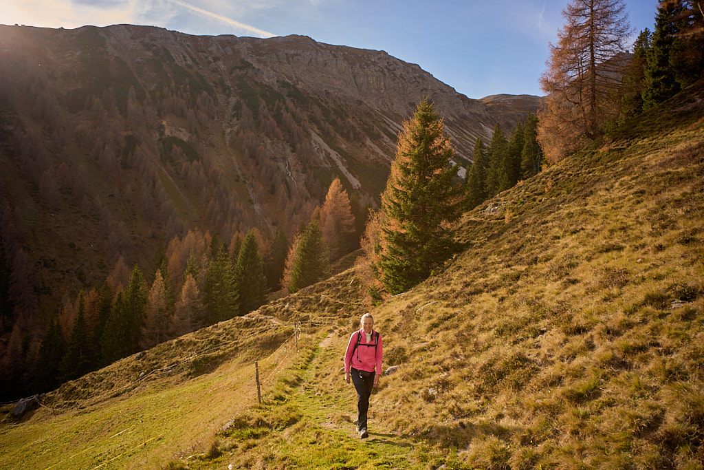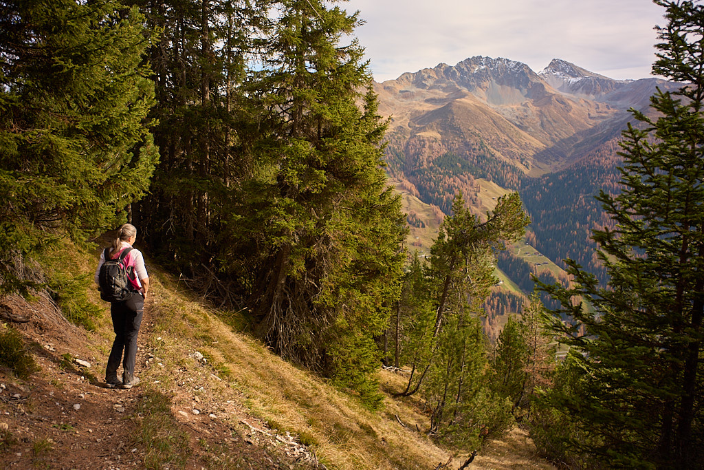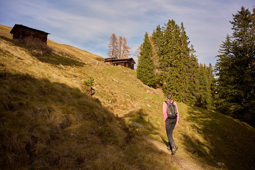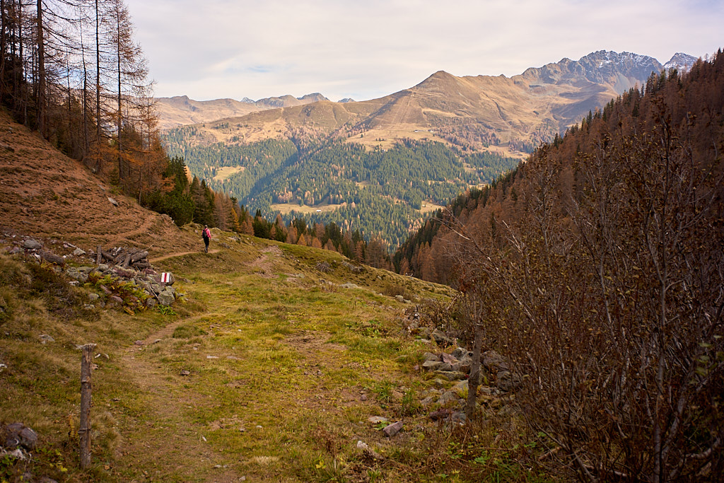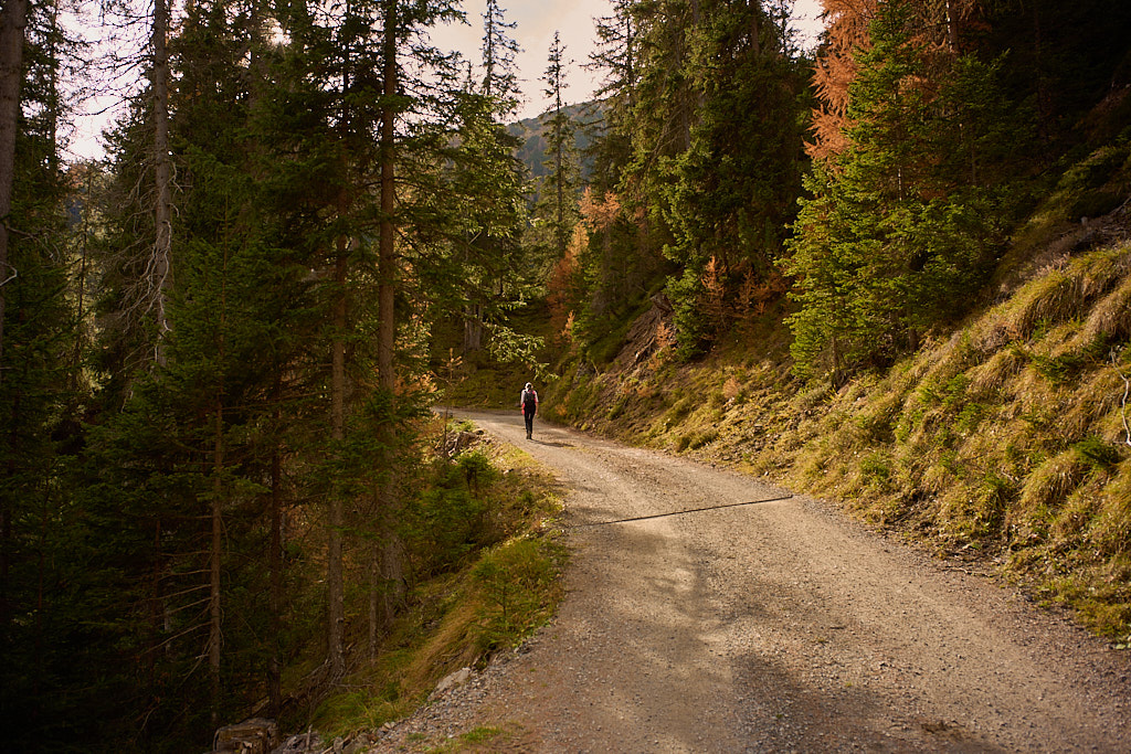 Nur dank des seit Tagen trockenen und sonnigen Herbstwetters liess ich mich heute dazu überreden, mich nochmals auf diesen Weg zu wagen. Wir starteten in Davos Ortolfi und stiegen auf der Alpstrasse zur Bärentaler Alp auf. Der parallel dazu und weiter unten entlangführende Wanderweg war wegen Bauarbeiten gesperrt und überdies bereits im Schatten.