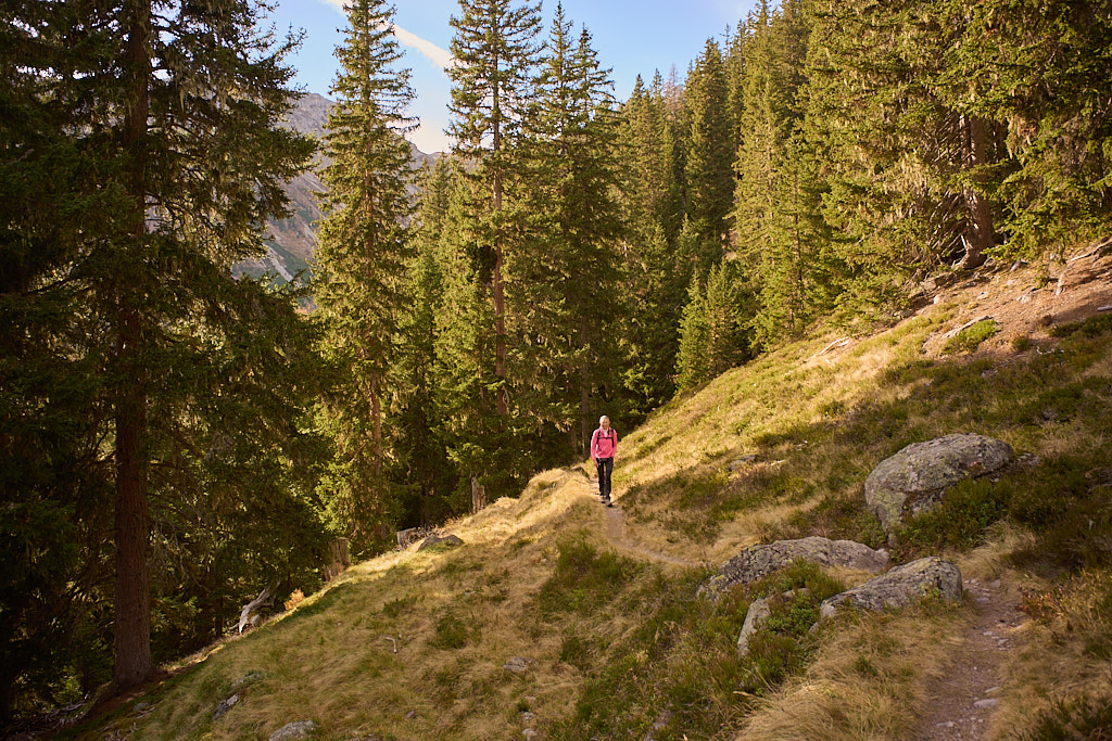 Den Wanderweg vom Bärental bei Davos Ortolfi bis zur Chummeralp bei Davos Frauenkirch sind wir bisher erst einmal gegangen, damals in der Gegenrichtung und an einem Regentag. In Erinnerung geblieben ist mir vor allem ein haarsträubender Balanceakt auf glitschigen Graspolstern und Steinen im Chummertal, wo ein katastrophaler Sturz auf dem vor Kuherzeugnissen, Schlamm und Wasser strotzenden Trampelpfad um jeden Preis vermieden werden musste.