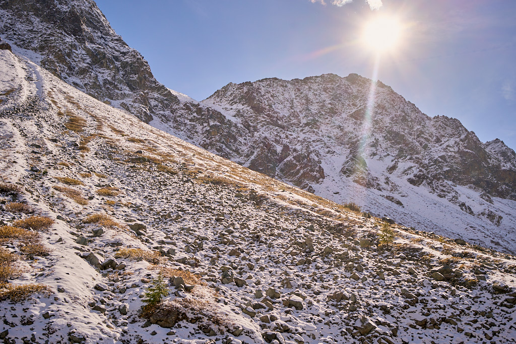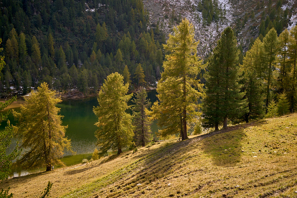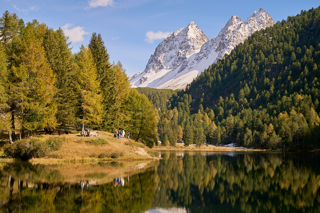 Der Lai da Palpuogna ist meiner Meinung nach im Herbst am schönsten, wenn der erste Schnee sich in den Bergen festsetzt und bunte Herbstfarben sich unter den Gipfeln verbreiten. Wie im letzten Jahr machten wir uns heute einmal mehr auf den Weg dorthin. Susanne nahm dem Zug und ging von Preda aus zu Fuss zum See, ich fuhr mit dem Gravelbike zunächst zum Albulapass und kehrte danach zum See zurück.