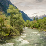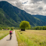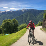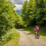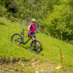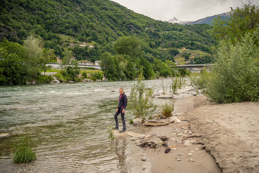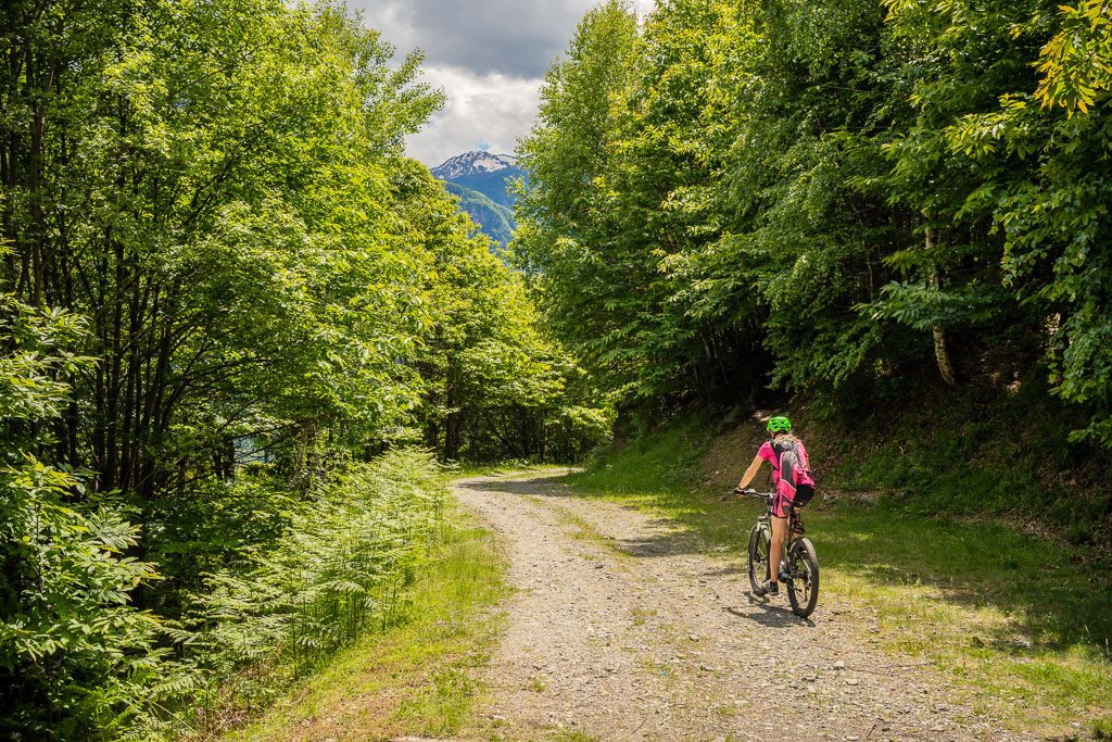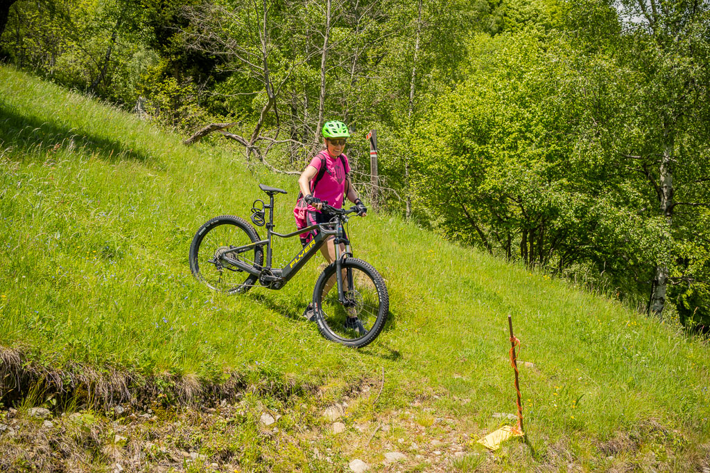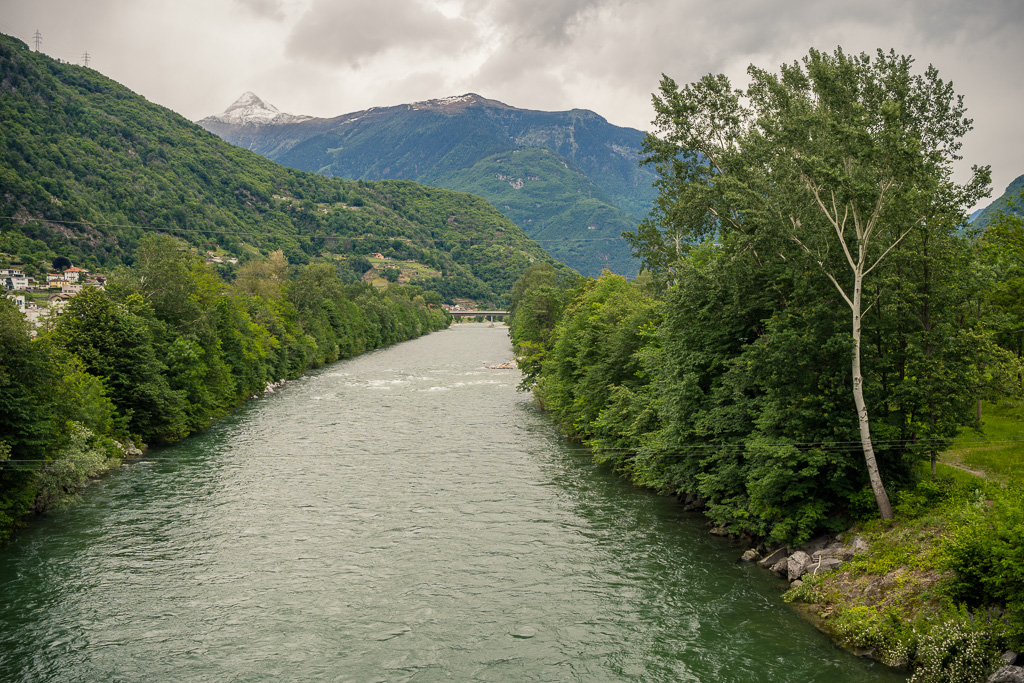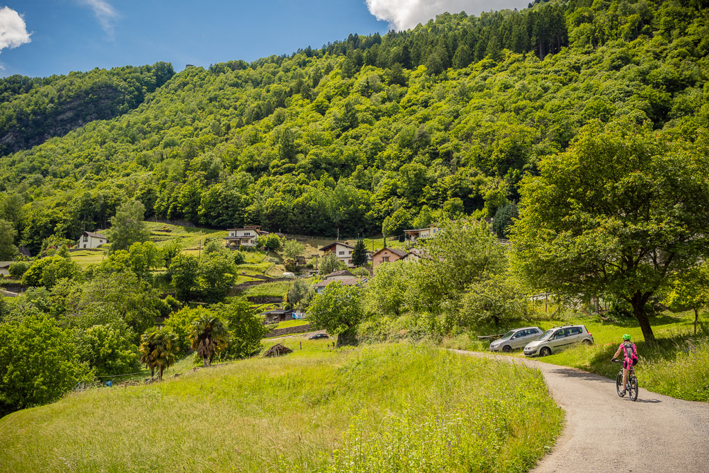 Von Verdabbio fuhren wir auf Strassen zügig weiter ins Tal und erreichten den Flusslauf der Moesa (die sich später vor Bellinzona mit dem Ticino vereinigt) kurz vor Cama. Der letzte Abschnitt der Tour führte am Südufer vom Fluss entlang über Wiesen und durch Wald, wobei auch hier nochmals mehrere verblockte Schiebe- und Tragestellen zu meistern waren. Zu guter Letzt trafen wir bei Lumino aber wieder auf den Weg, auf dem wir am Morgen hergekommen waren. Wir legten die verbleibende Strecke durchs Stadtgewimmel von Bellinzona nun etwas kompetenter als am Morgen problemlos bis zum Bahnhof zurück, wo wir verschwitzt und glücklich unsere Leihräder wieder abgaben.