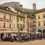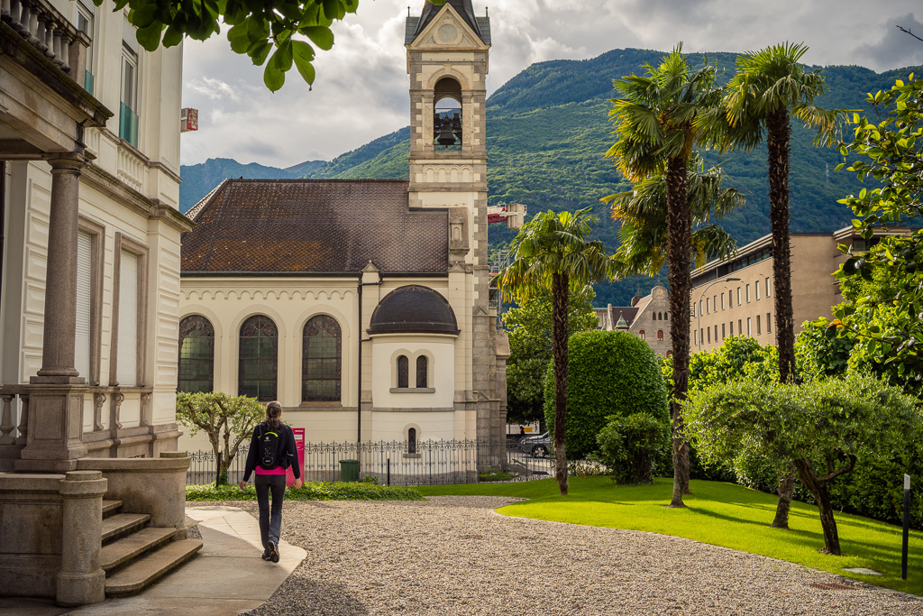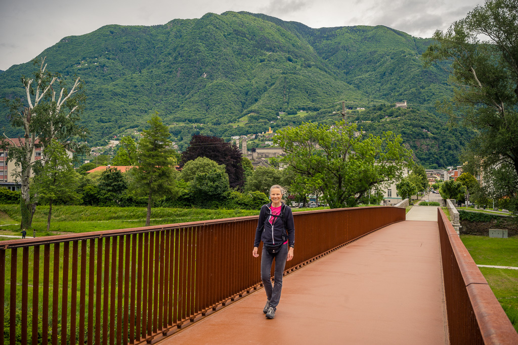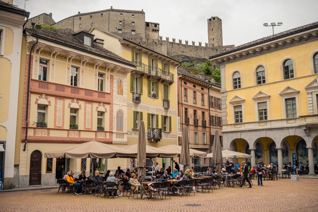 Südlich vom San Bernardino-Pass erwartete uns tatsächlich schon trockenes Wetter und nach der Ankunft in Bellinzona und dem Einchecken ins Hotel reichte die Zeit, um uns in der Stadt noch ein wenig die Füsse zu vertreten, beim Bikeverleih am Hauptbahnhof zwei Mountainbikes mit und ohne Strom zu reservieren und den Tag mit einem viel zu üppigen Pizzagelage zu beenden.