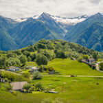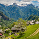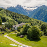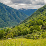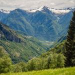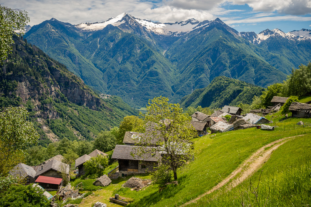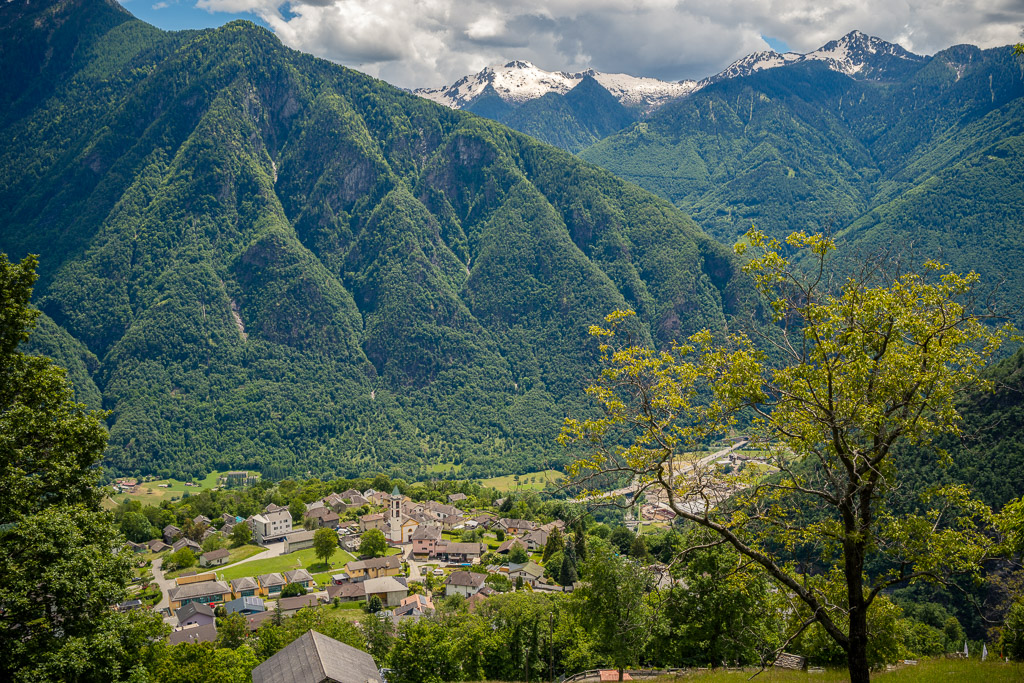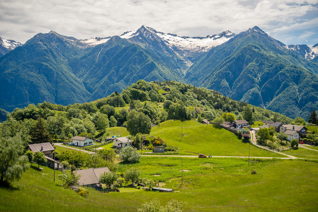 Durch den Verkehr von Bellinzona fuhren wir zunächst in Richtung Lumino und San Vittore, was navigationstechnisch für uns Landeier im ungewohnt dichten Strassennetz der Stadt für sich allein schon eine Herausforderung war. Bei San Vittore begann ein Aufstieg von 800 Höhenmetern am Stück auf einer Alpstrasse zu den abgelegenen Hütten von Giova hoch über dem dichtbesiedelten Talboden des Valle Mesocina. Hier konnte man sich nicht mehr verfahren; es ging Kurve um Kurve in der zunehmend wärmer werdenden Mittagssonne nach oben.
