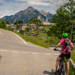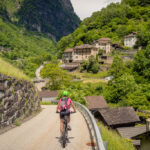Am nächsten Morgen ging es dann zur Sache: für mich ungewohnt früh um 10 Uhr holten wir am Bahnhof unsere bereitstehenden Leihbikes ab und fuhren los. Am Vorabend hatte ich auf dem Handy schon eine ziemlich ambitiöse Tour in Richtung Calancatal zusammengebastelt, von der noch völlig ungewiss war, welchen Bruchteil davon wir angesichts des ungewohnten Materials und Wetters meistern würden. Es handelte sich hier im Wesentlichen um eine Kombination der Veloroute Nr. 6 von Bellinzona in Richtung San Bernardino mit den Mountainbike-Touren Nr. 639 nach Giova und Nr. 638 nach Santa Maria