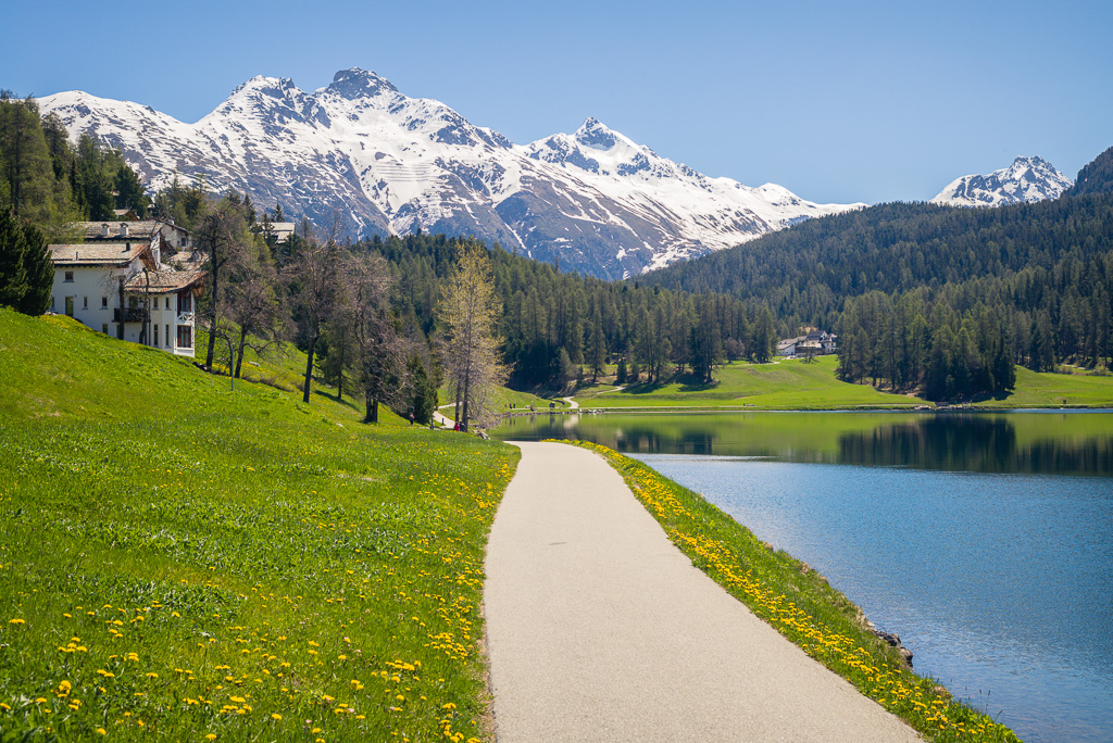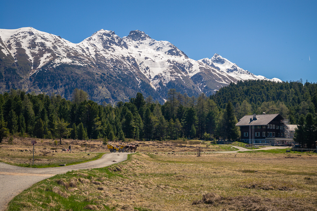 Wiederholung des Ausflugs von 2017 über den Julierpass nach St. Moritz, diesmal mit kleiner Wanderung von St. Moritz am Laj da Staz und am Taleingang vom Val Roseg vorbei nach Pontresina.