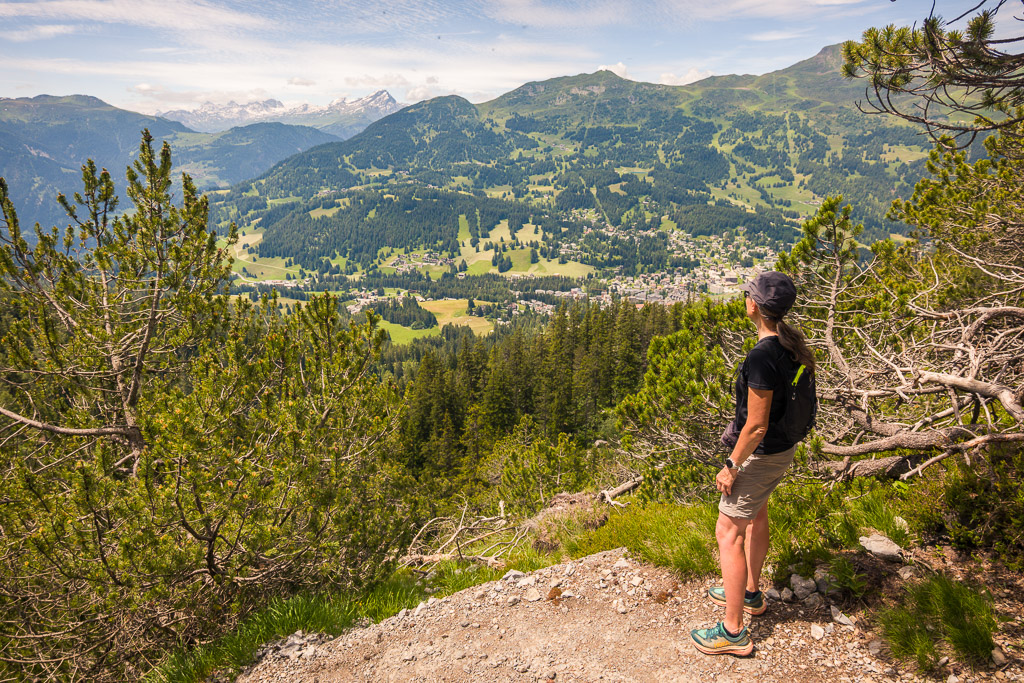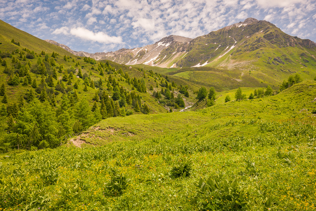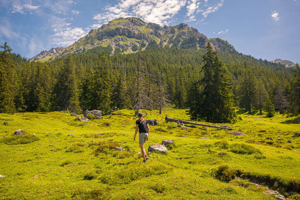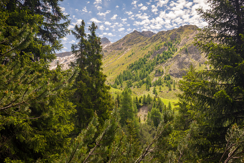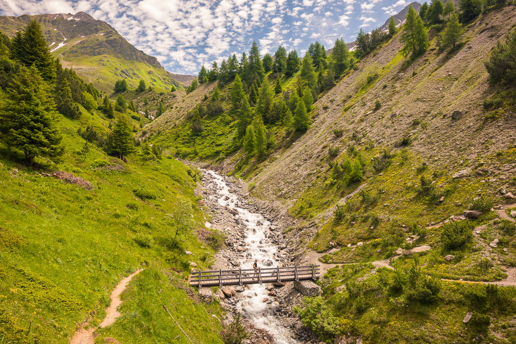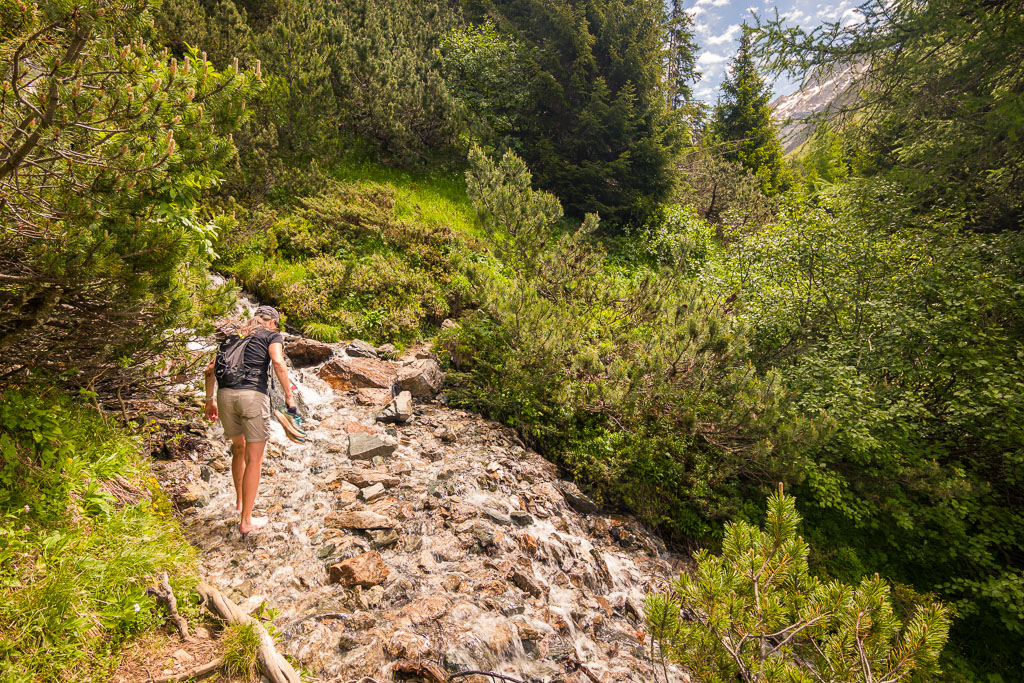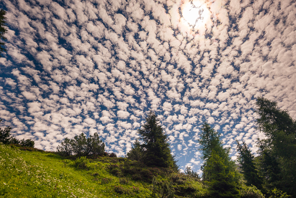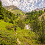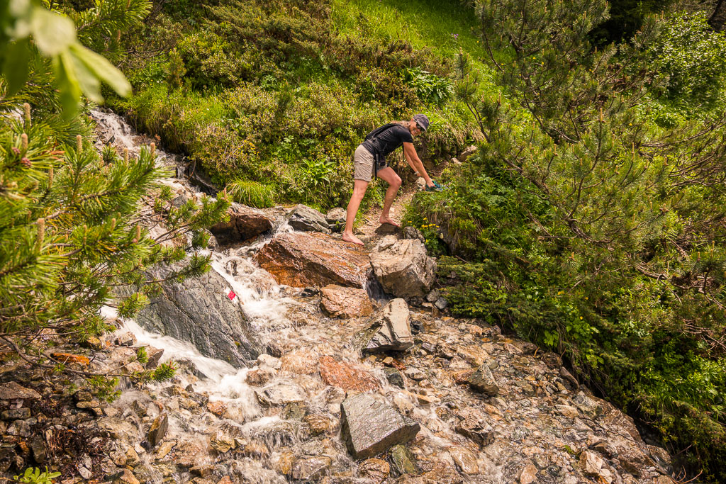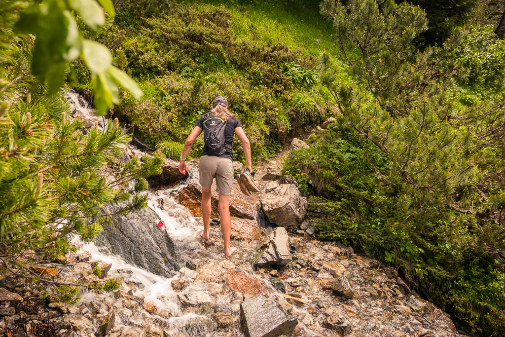 Kleine Wanderung von der Lenzerheide zur Alp Sanaspans über den Wasserfallweg. Abstieg auf der Alpstrasse und hinunter zur Biathlonarena bei Lantsch/Lenz.