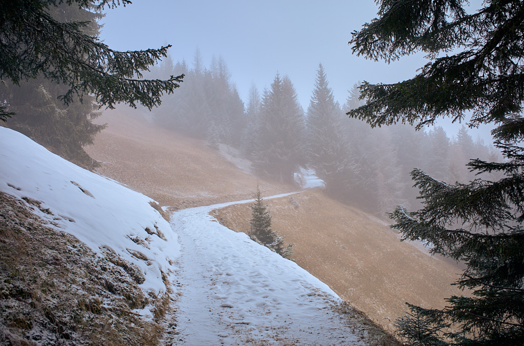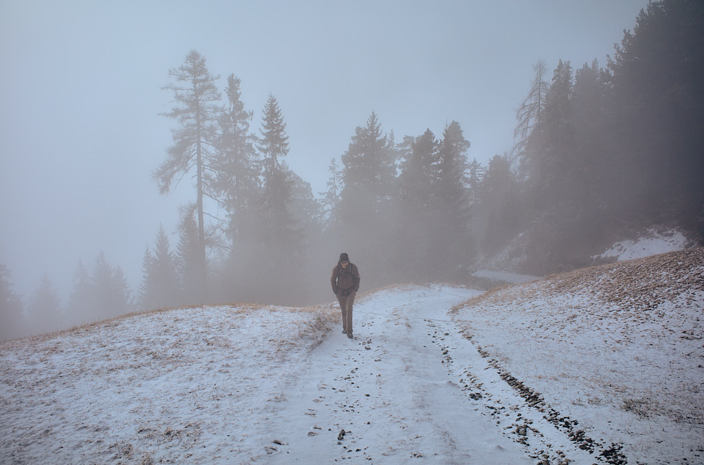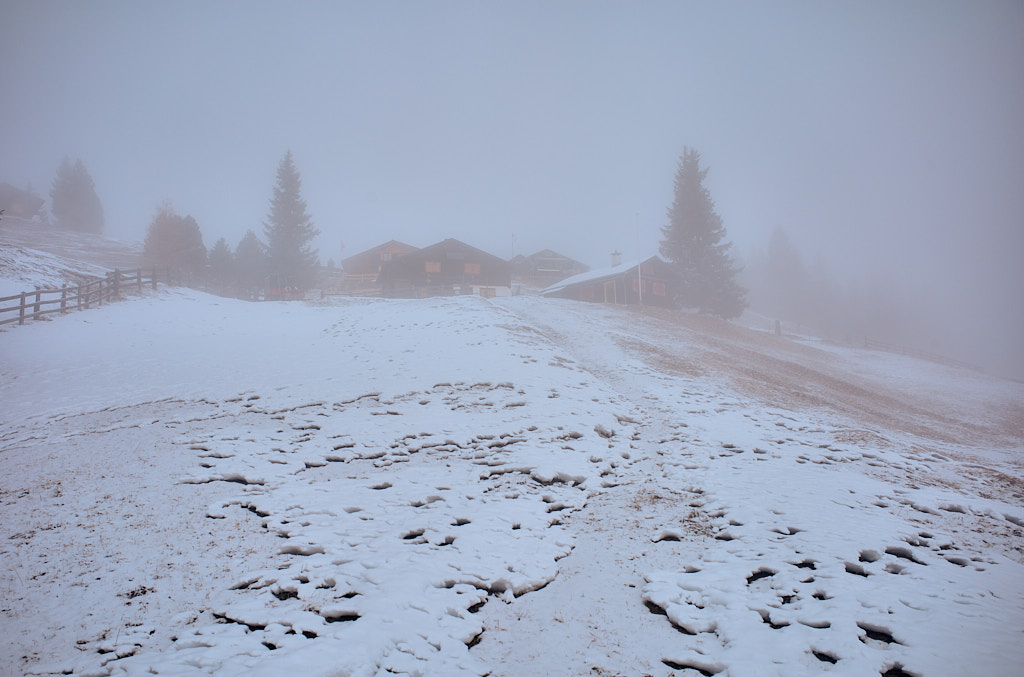 Winterspaziergang über Pardela zur Schmittner Alp. Auf dem gleichen Weg wieder zurück, da die Alpstrasse unter einer dünnen Reifschicht spiegelglatt gefroren war.