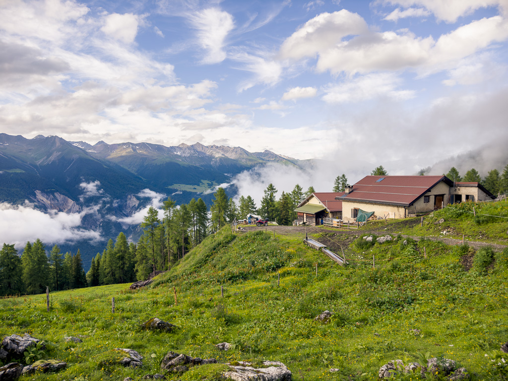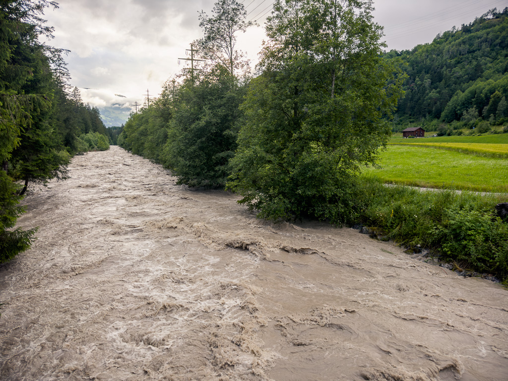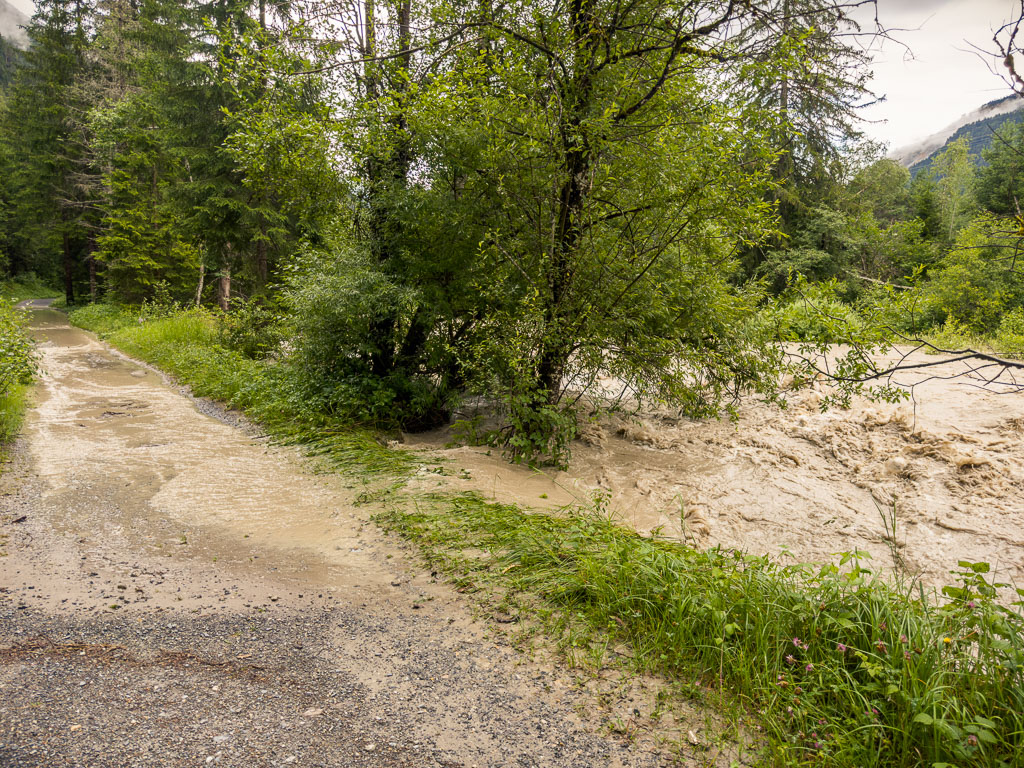 Mein erster Ausflug zum Motta Palousa in diesem Jahr begann erst am späten Nachmittag, da es den ganzen Tag und die Nacht zuvor in Graubünden und im Tessin sehr stark geregnet hatte. Was die Warnstufe 3 für Regen und Hochwasser in der SwissMeteo-App für die Praxis bedeutet, konnte ich schon auf der Fahrt von Alvaneu Bad nach Surava beobachten. Die reissenden Wassermassen der Albula flossen nur noch wenig unter der Höhe vom Uferweg entlang und an einigen Stellen war schwappte das Wasser auch schon über die Böschung hinaus und auf den Waldweg. Ich konnte den Anfang des Alpwegs zur Alp Ozur bei Surava trotz mulmigen Gefühlen trotzdem erreichen, machte mir über den Rückweg aber schon Gedanken.
