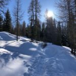 Einige Abfahrten neben den Pisten am Jakobshorn, dann über die Müli-Abfahrt ins Sertigtal, Gegenanstieg auf Fellen durch den Wald bis zum Restaurant Hubel im Rinerhorn-Skigebiet. Schöne Sulzabfahrt bis zur Bushaltestelle in Davos Glaris.