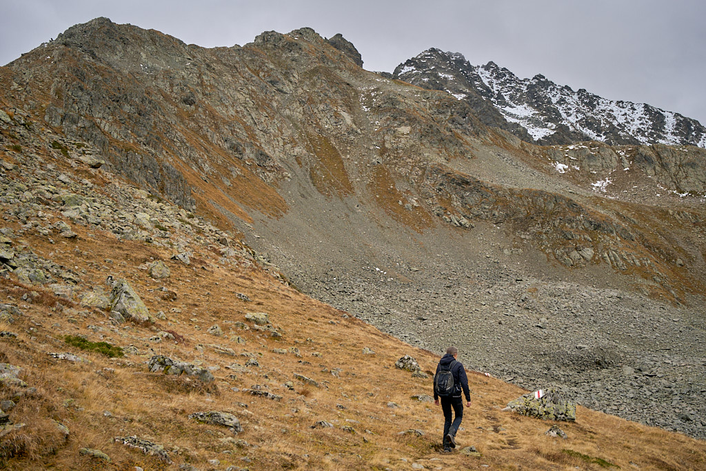 Dies war zu meinem Erstaunen erst unser dritter Besuch auf dem Rinerhorn. Im Jahr 2022 standen wir ziemlich genau zur gleichen Zeit im Oktober auf dem damals schneebedeckten Gipfel. Ein Jahr zuvor überschritten wir das Rinerhorn zum ersten Mal auf unserem Weg zum Leidbachhorn.