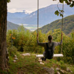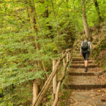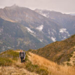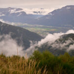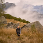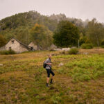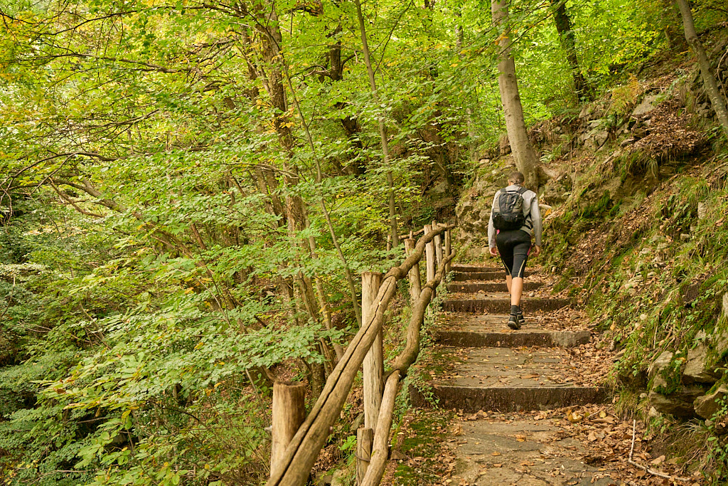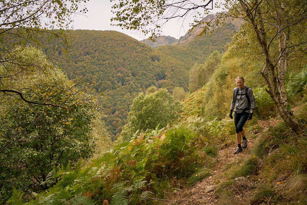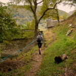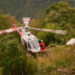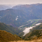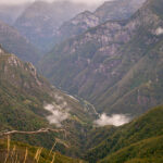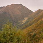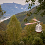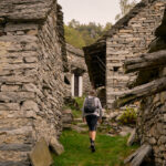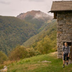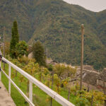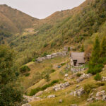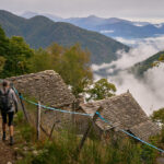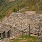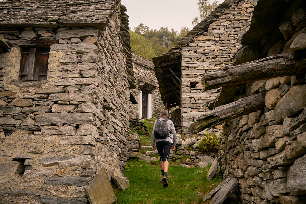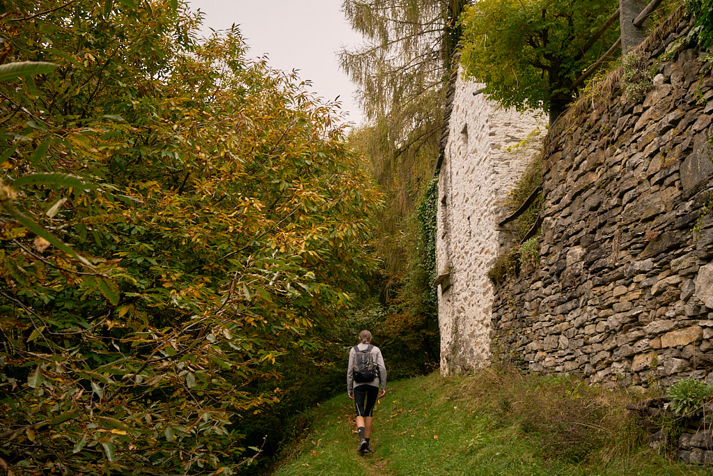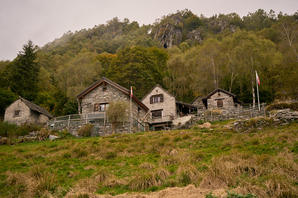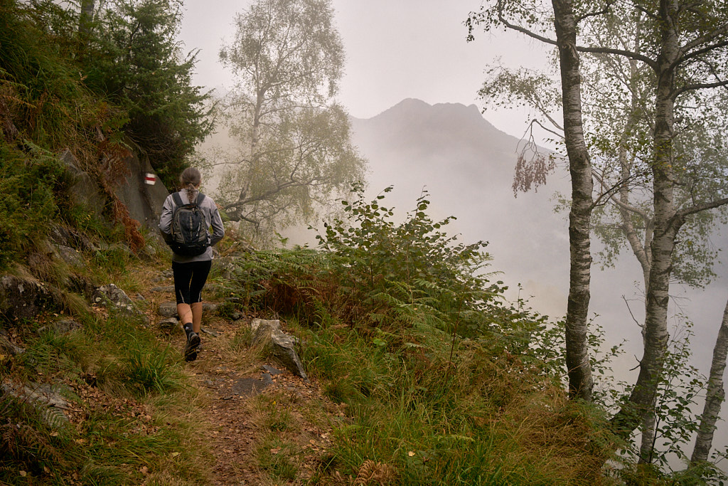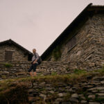 Der Weg führte im Zickzack steil durch den Wald und an zahlreichen mehr oder weniger verfallenen Alphütten vorbei. Dieser Schein konnte jedoch trügen. Bei einem Ziegenstall versuchte ich, den verrosteten Riegel der Holzpforte zu öffnen und einen Blick ins Innere zu erhaschen. Dabei fiel mir das ganze desolate Schloss mitsamt Beschlägen zu Boden, sodass ich es irgendwie wieder an die Holzbalken befestigte und weiterging. Wenige Meter später knatterte es plötzlich aus dem Tal und ein Helikopter stieg unvermittelt hinter den Bäumen herauf. Während wir unseren Augen nicht trauten, setzte er tatsächlich genau neben jener Scheune zur Landung an, bei der ich eine Minute zuvor noch am Werk war. Wegen der kleinen Waldlichtung konnte er zwischen den Bäumen nur mit den Kufen am Rand der Stützmauer aufsetzen. Ein älteres Paar stieg aus und bewegte sich gebückt zur Hütte, während der Hubschrauber mit lautem Getöse wieder ins Tal entschwand. Wir hatten uns schon zuvor gewundert, ob diese Hütten überhaupt noch benutzt werden und wie ihre Besitzer sie wohl nur auf mühsamen Pfaden erreichen können. Aber der Linienflug aus der Luft scheint für einige von ihnen offenbar auch eine gangbare Alternative zu sein.