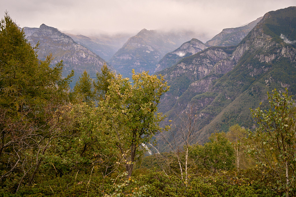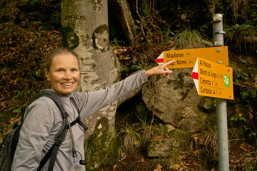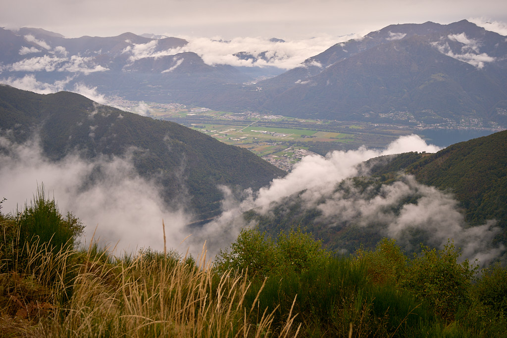 In unserem Bestreben, einige der Berggipfel im Umkreis von Locarno zu Fuss zu besteigen, fingen wir heute mit dem Madone an. Dieser wird auf den Landkarten widersprüchlich sowohl als „Madone” wie auch als „El Madómm” bezeichnet. Auf der Karte sind zudem gleich zwei Gipfelpunkte verzeichnet, wobei der Name wahlweise dem einen oder dem anderen zugeordnet ist. In den Routenbeschreibungen ist auch noch von einem stellenweise unklaren Wegverlauf die Rede und einige der Bergketten hingen heute ziemlich in den Wolken. Unsere Besteigungsversuch versprach also interessant zu werden.