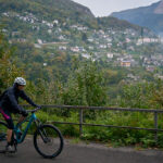 In Mergoscia fuhren wir noch einige Kurven durchs Dorf weiter hoch, bis wir eine Sackgasse bei Mòtt erreichten. Hier kamen an einem Parkplatz Tragseile von mehreren kleinen Materialseilbahnen zusammen, die durch den Wald zu abgelegenen Hütten in allen Richtungen führten. Wir liessen unsere Bikes zurück und begannen auf einem Wanderweg den bereits ausgeschilderten Aufstieg in Richtung Madone.