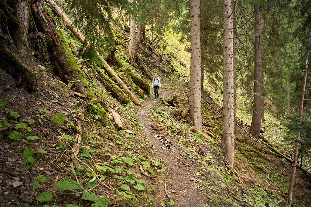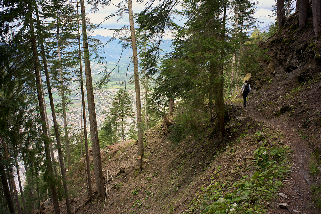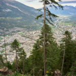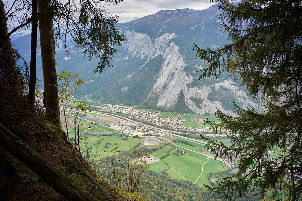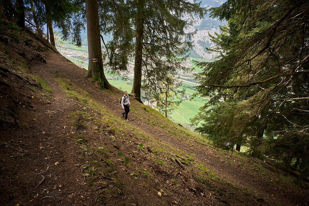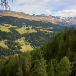 Wir stiegen auf einem schönen Wanderweg durch den Schwarzwald zur Zwischenstation der Seilbahn bei Känzeli ab. Unterwegs konnte man zwischen den Bäumen immer wieder auf die Stadt Chur hinunterschauen. Interessant war, wie gross die Stadt aus der Nähe erscheint, wenn man sich in ihr befindet, wie klein und überschaubar sie aber von oben aussieht. Von Känzeli ging es dann auf einer Waldstrasse wieder zurück zur Postautostelle nach Malix.