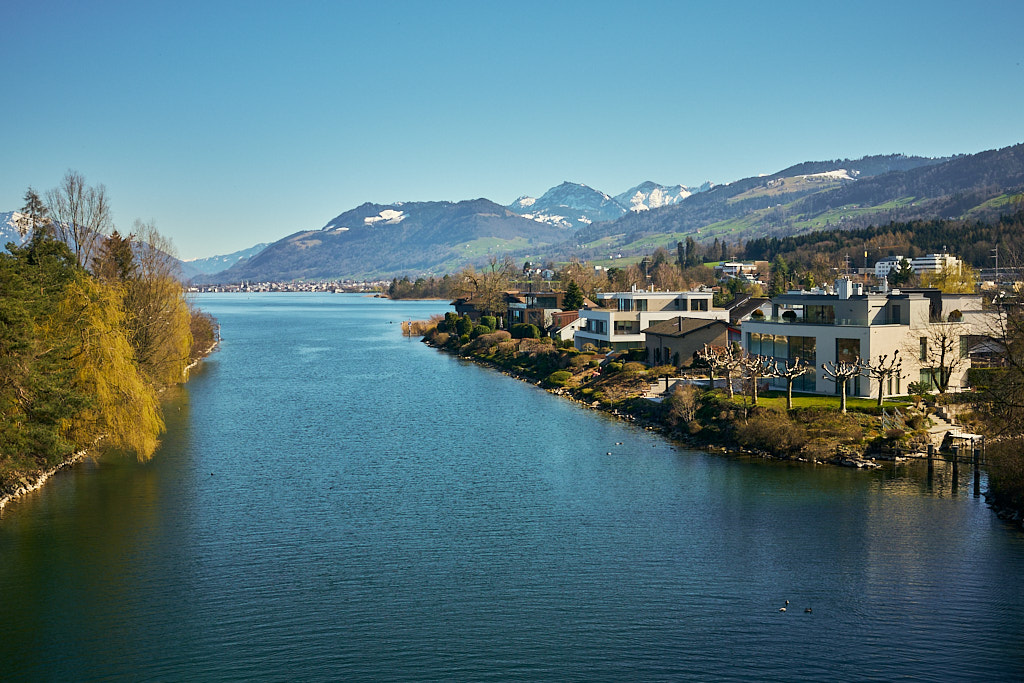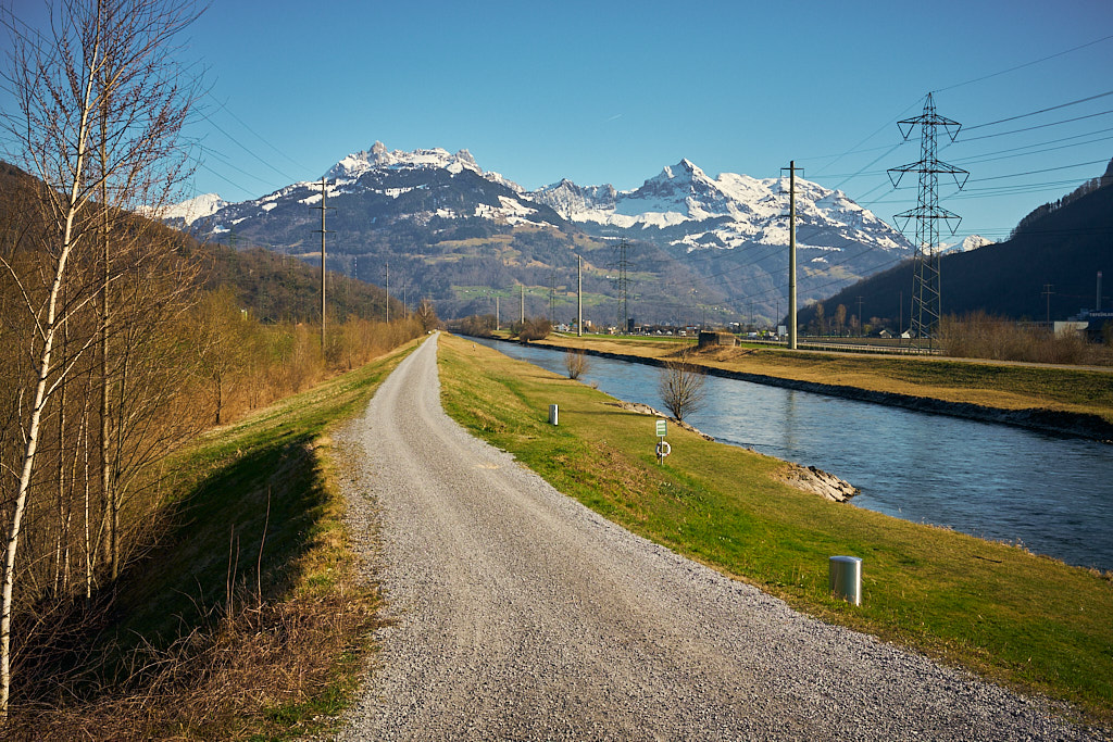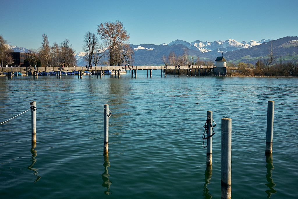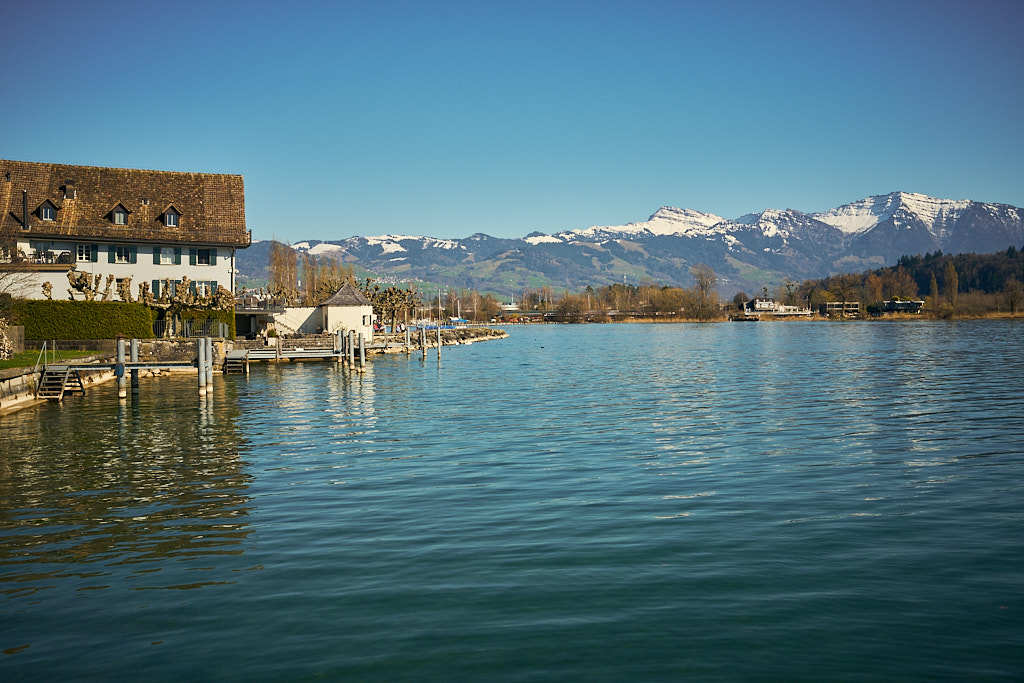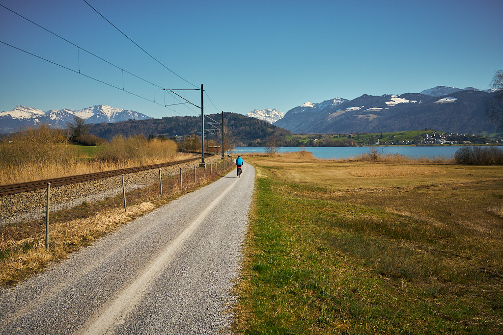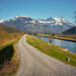 Hinter Jona wurde es auf dem Weg nach Schmerikon dann bald wieder ruhiger. Auch dieses Stück führte ständig mehr oder weniger dem Seeufer entlang und bot malerische Ausblicke zunächst auf die zurückliegenden Hügelketten vom Etzelpass. Etwas später kündigte sich dann schon wieder das Glarnerland mit den verschneiten Gipfelketten von Mürtschenstock und Fronalpstock an. Bei Uznach erreichte ich dann wieder die Weite der Linthebene. Durchwegs auf Feldwegen fuhr ich an Benken und Schänis vorbei nach Bilten, wo ich dann wieder den Radweg entlang des Linthkanals erreichte. Diesem folgte ich auf den letzten Kilometern über Ziegelbrücke zurück nach Weesen.