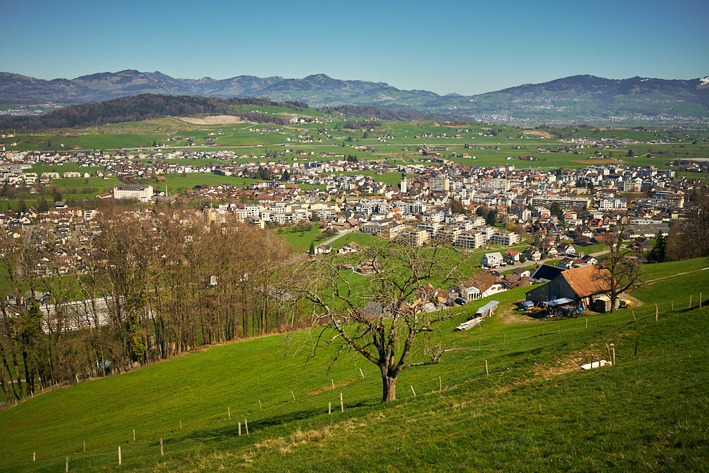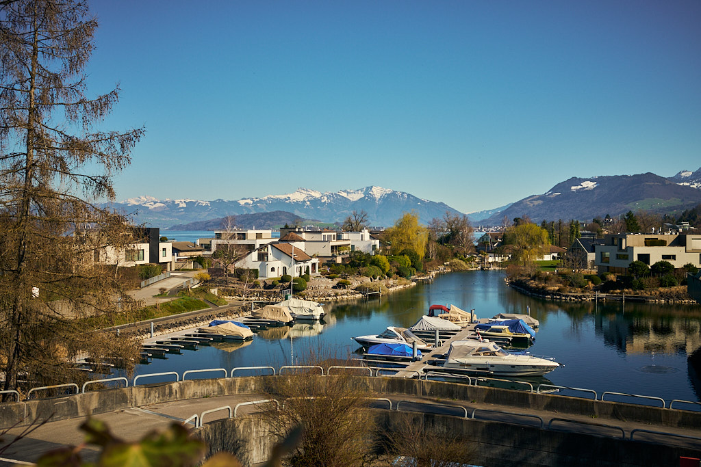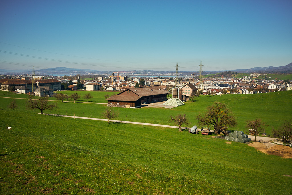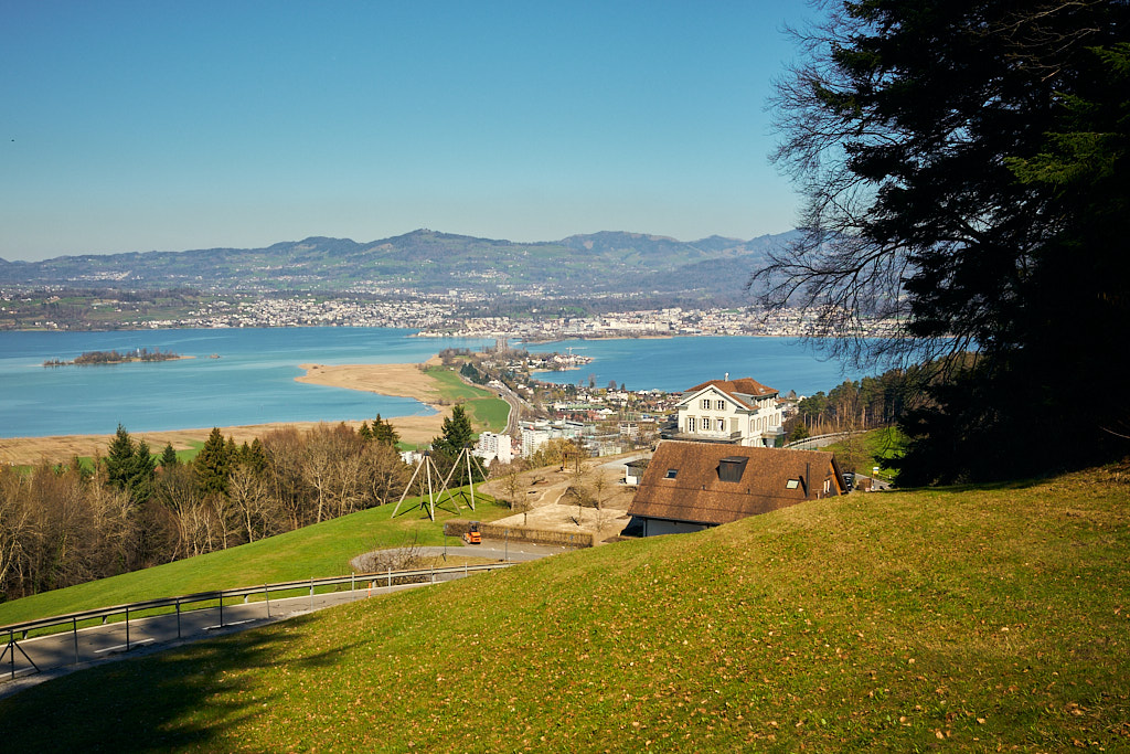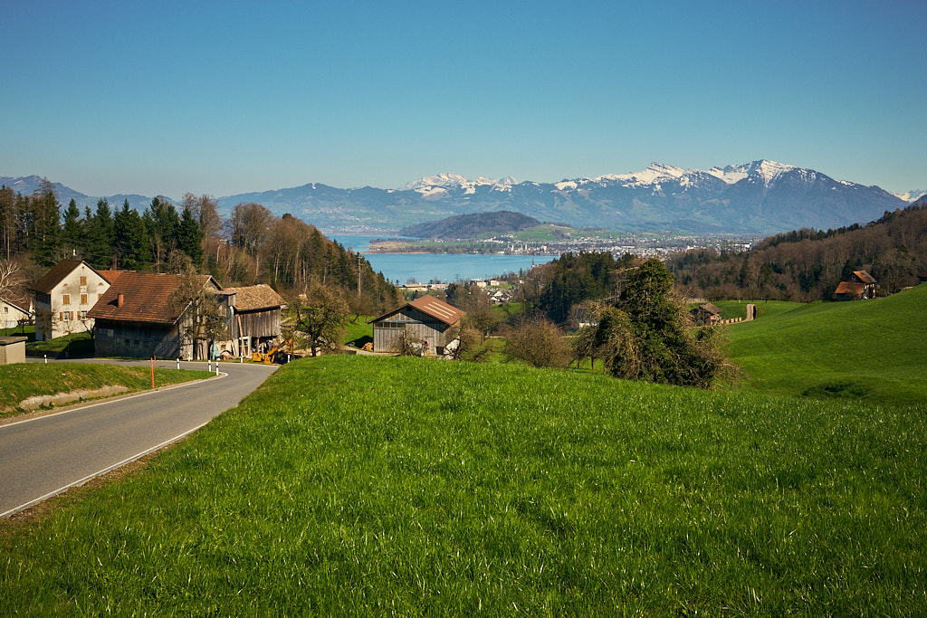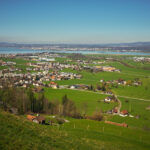 Vom Etzelpass aus fuhr ich recht steil und kurvenreich bergab durch den Wald nach Pfäffikon SZ, wo die idyllische Voralpenfahrt ein jähes Ende nahm und ich wieder voll der Zivilisation mitsamt dem entsprechenden Verkehr begegnete. Pfäffikon war mir vor allem wegen des dortigen Wellnessbades Alpamare von früher in Erinnerung und ich hatte mir fest vorgenommen, danach Ausschau zu halten. Vor Ort musste ich mich aber derart auf den dichten Stadtverkehr konzentrieren, dass ich schon längst am Alpamare vorbei war, als es endlich für einen Moment etwas ruhiger wurde.