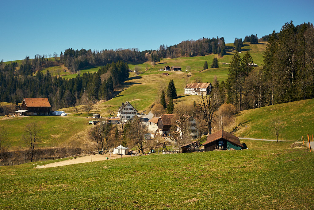 Erster Meilenstein unterwegs war Siebnen, durch das ich oft zum Wandern ins Wägital gefahren bin. Hier begann denn auch der anfangs steile Aufstieg über den Vorderberg zum Sattelegg, einem bekannten Wochenend-Ausflugsziel. Im weiteren Verlauf ging die Route dann aber in eine sehr schöne Flachetappe durch den Wald über, bis ich bei den Häusern bei Sonne wieder auf die Hauptstrasse von Siebnen ins Wägital und auf die Abzweigung von dort zum Sattelegg traf.