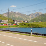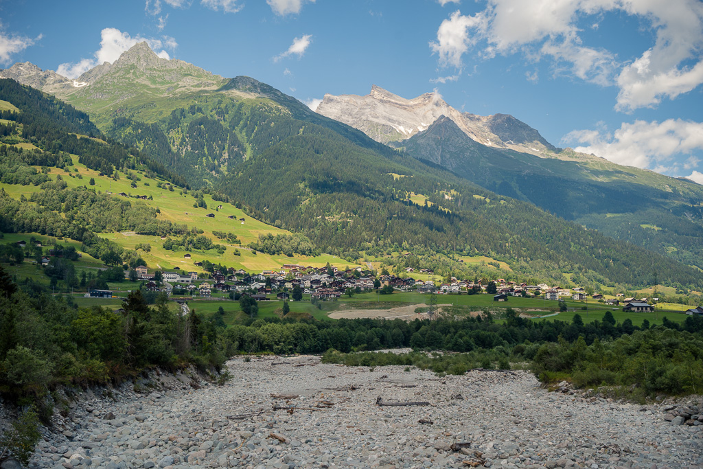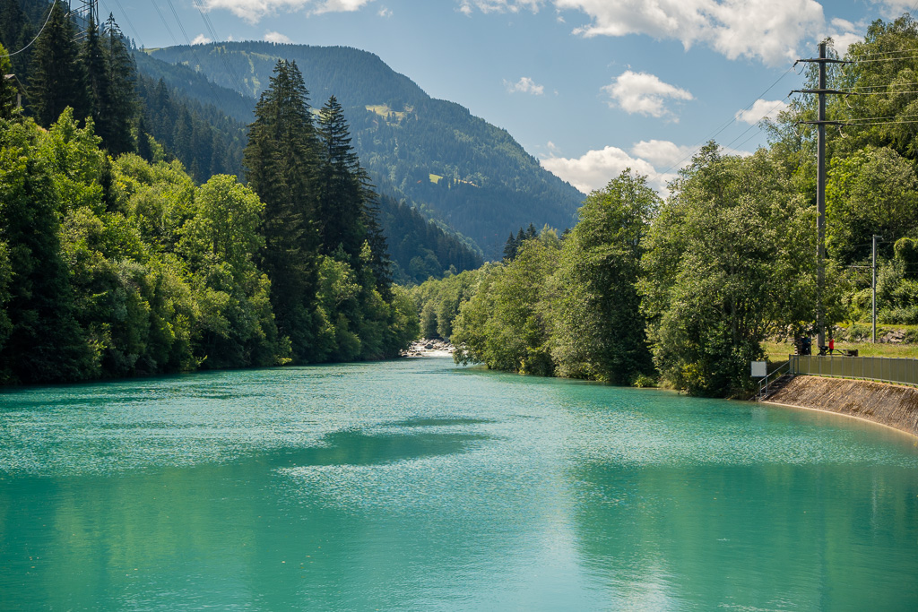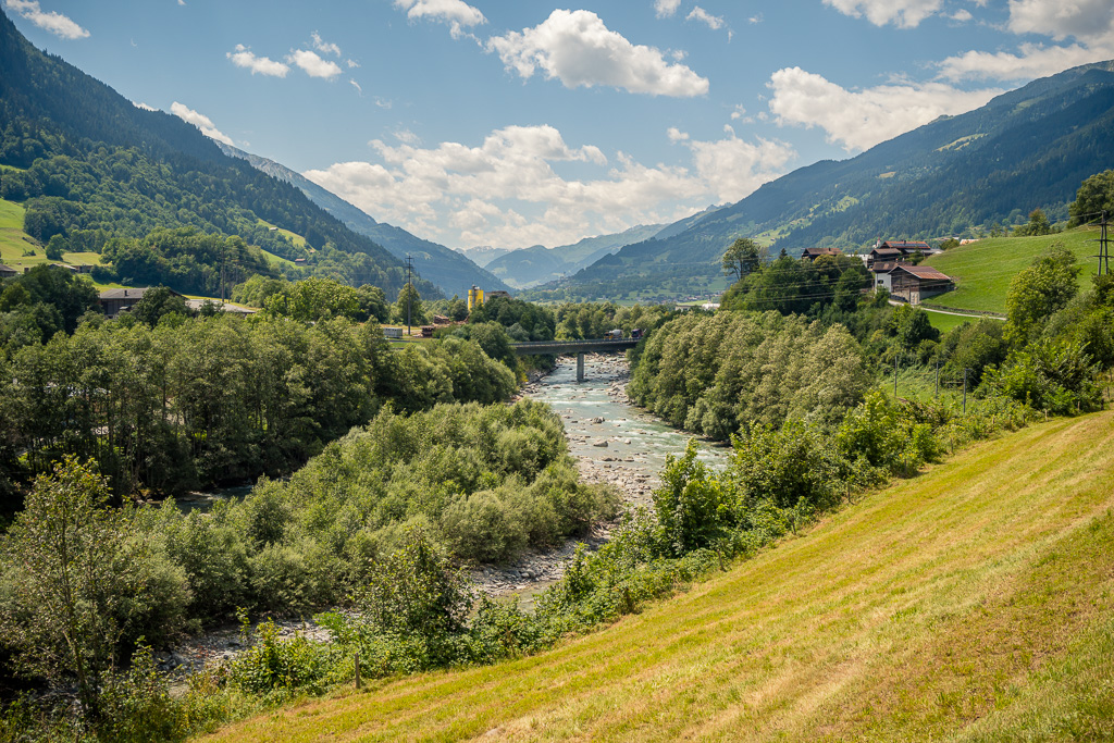 Von Ilanz nach Disentis fuhr ich sehr abwechslungsreich, aber wegen unzähligen kleinen Zwischensteigungen und -abfahrten über Schotterwege auch ziemlich anstrengend stets im Talgrund der Surselva und über weite Strecken in Sichtweite oder neben dem Vorderrhein. Die Autofahrt von Bonaduz nach Disentis beim letzten Mal war damals gefühlt endlos und zermürbend; mit dem Bike war die Strecke zwar auch nicht kürzer, dafür aber dank den viel schöneren Landschaftseindrücken wesentlich kurzweiliger. Wie damals mit dem Auto erreichte ich Disentis auch diesmal erst am Nachmittag und machte mich daher unverzüglich an den Aufstieg zum Oberalppass, den ich gegen halb fünf erreichte.
