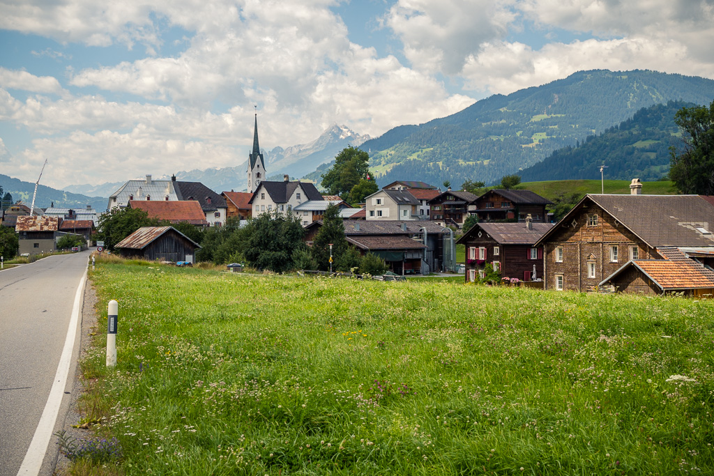 Nach einigen Minuten des Geradebiegens und Streckens am Brunnen im Zentrum von Ilanz kehrten langsam die ersten Lebensgeister wieder zurück. Bis nach Bonaduz verblieben also noch 24 km und etwas über 300 Höhenmeter auf einer Nebenstrasse; die Radbeleuchtung hatte noch Strom für Stunden; ich war inzwischen zwar ziemlich leer, der Wassertank dafür aber wieder voll. «What could possibly go wrong?» – Ich begann also langsam und stetig den Anstieg aus Ilanz heraus in Richtung Versam. Ein Dorf nach dem anderen – Castrisch, Valendas, Carrera – zog in Zeitlupe und wie in Trance an mir vorbei. Bei Versam überschritt ich endlich den letzten grosse Buckel auf dem Höhenprofil des Bikecomputers und von da an ging es mit Ausnahme einer kleinen letzten Zwischensteigung nur noch bergab bis nach Bonaduz.