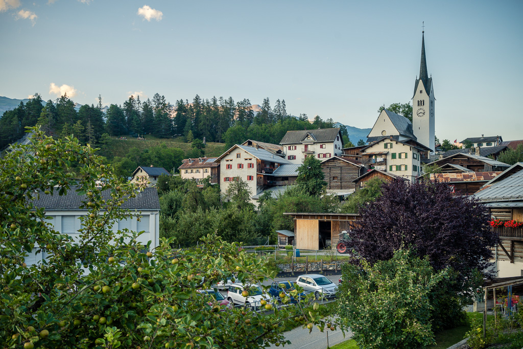 Die Überlegung, dass ich mit weniger Rollwiderstand auf Asphalt schneller vorankommen würde als über Wald und Wiesen, erwies sich im Prinzip als richtig. Nicht berücksichtigt hatte ich allerdings den heftigen Gegenwind, mit dem ich mich nun auseinandersetzen musste. Dieser kam für mich völlig unerwartet, da ich am Nachmittag bereits in der anderen Richtung gegen den Wind fuhr und eigentlich davon ausgegangen war, dass das Thema Wind sich auf dem Rückweg erledigt haben würde. Trotz leichtem Gefälle musste ich also rund anderthalb Stunden nochmals ziemlich in die Pedale treten, bis ich um 20 Uhr endlich Ilanz erreichte. Dieselbe Strecke, die mir im Auto bereits schon endlos lange vorgekommen war, konnte ich der Vollständigkeit halber jetzt nochmals auf dem Rad durchleben – sie war mindestens genauso endlos.